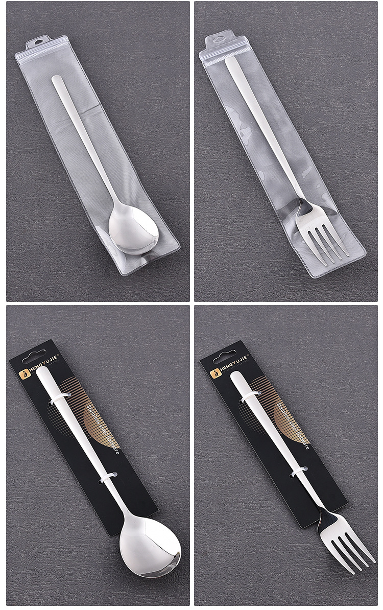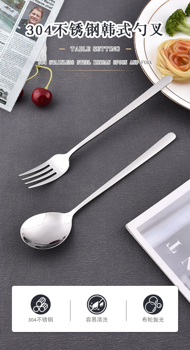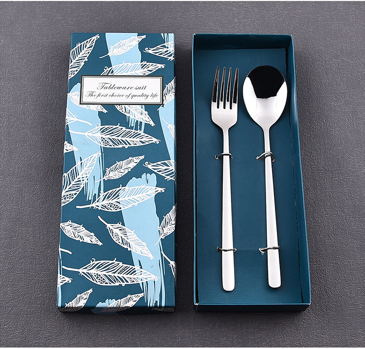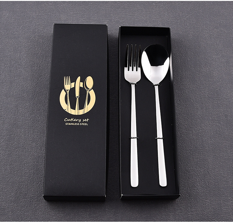 304ステンレス韓国式携帯食器2点セット学生屋外旅行スプーンフォークセットLOGOギフトボックス