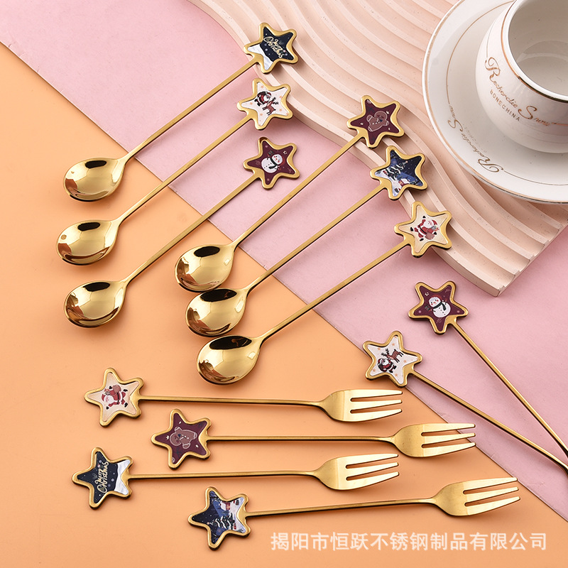 304 ステンレス鋼クリスマスかわいいスタースプーンセット新しい漫画ステンレス鋼食器ギフトボックス
