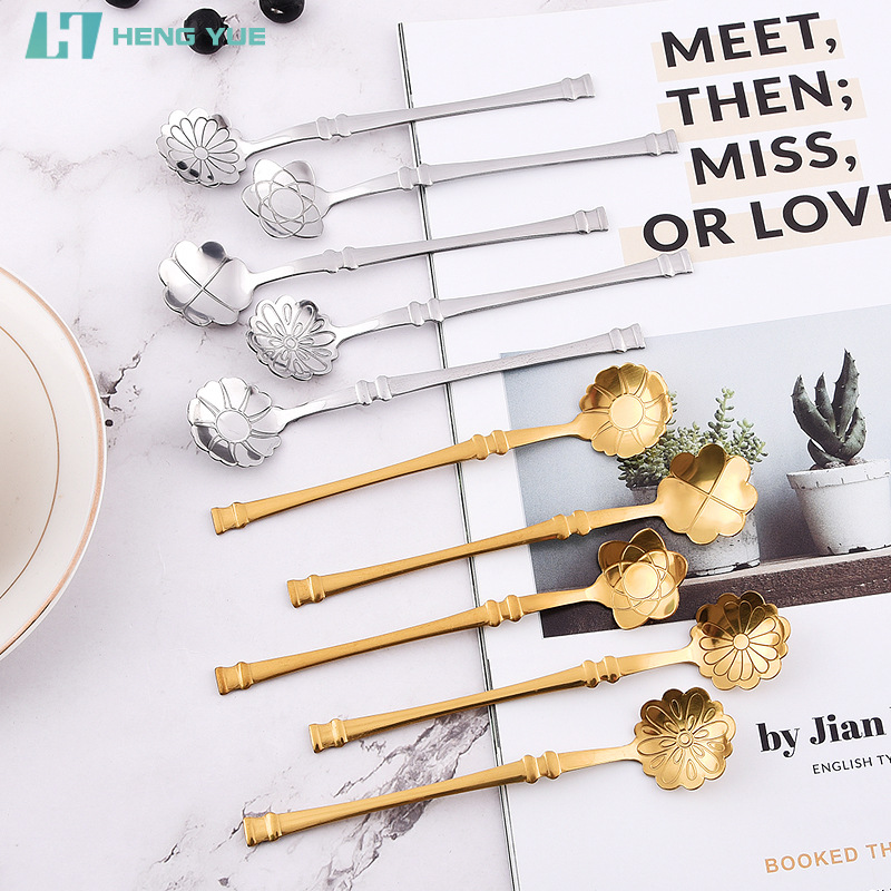 410ステンレス花模様漫画コーヒースプーン5種類の模様は多色チタンメッキメーカーの卸売りをサポートすることができる