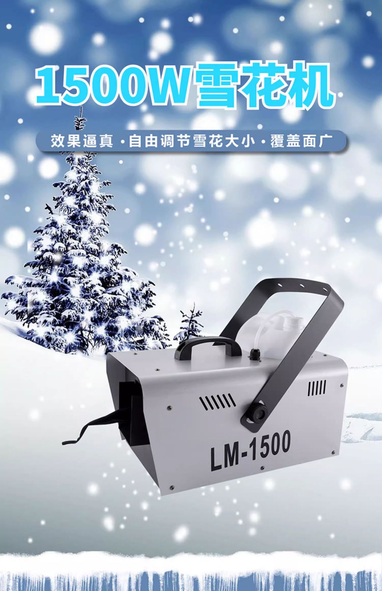 1500w小型雪花機、ステージ用、屋内外兼用、人工降雪機、造雪機、スノーマシン