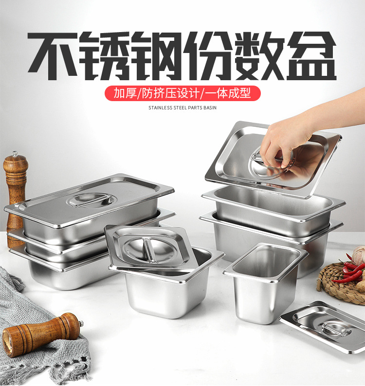 304ステンレスの数鉢を厚くして、蓋付きのバイキングの食べ物鉢のステンレスの長方形の点数盤のメーカーが承認します。