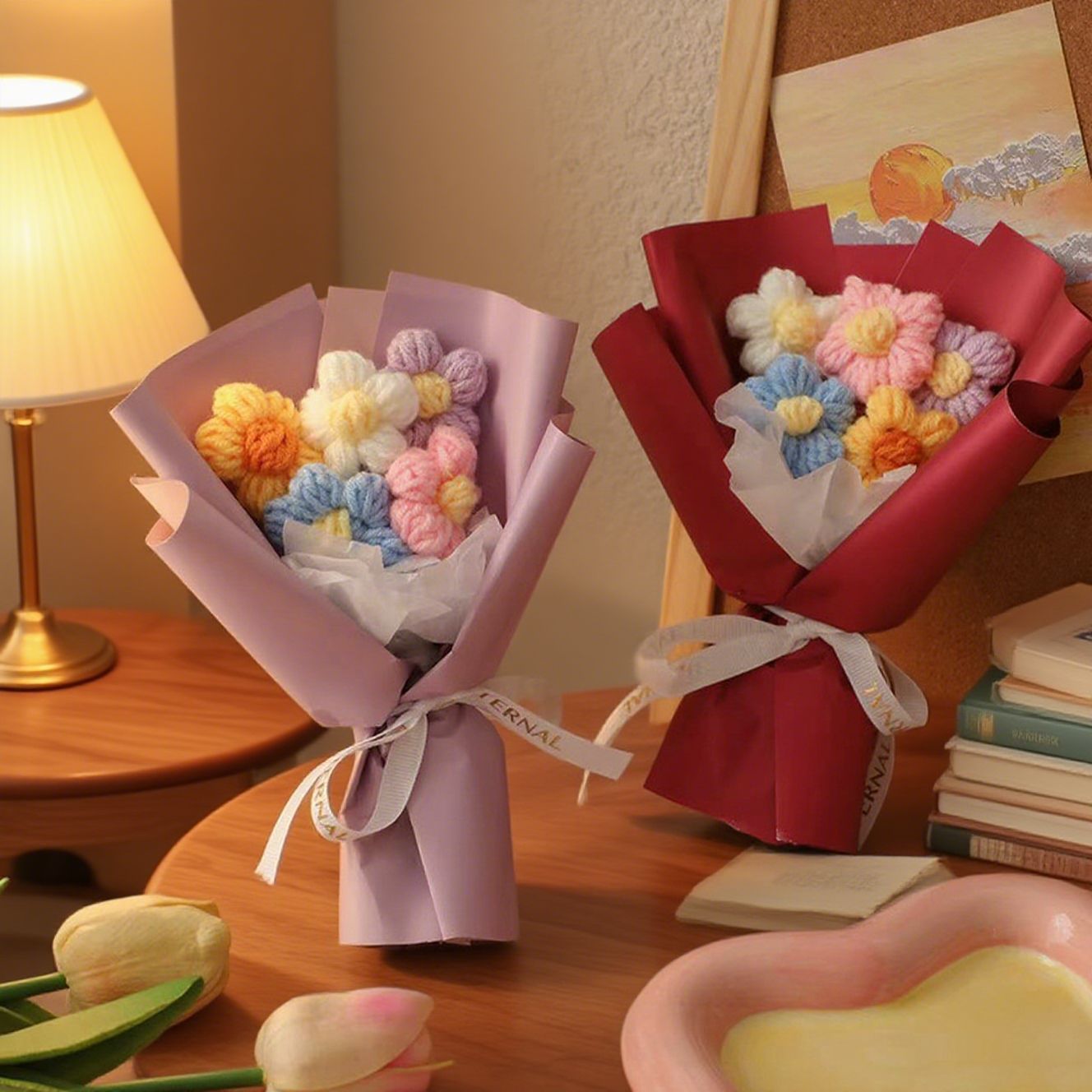 教師の日のギフトニットウールパフブーケ手編み誕生日ギフト母のための卸売不滅の花