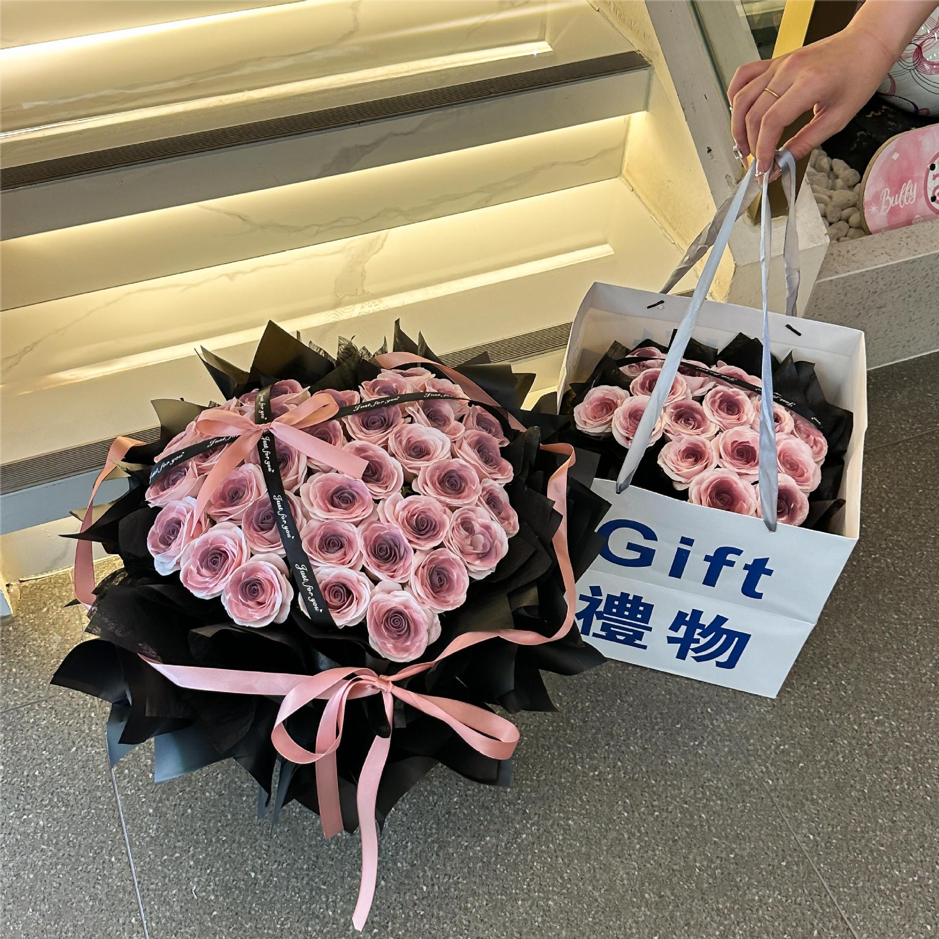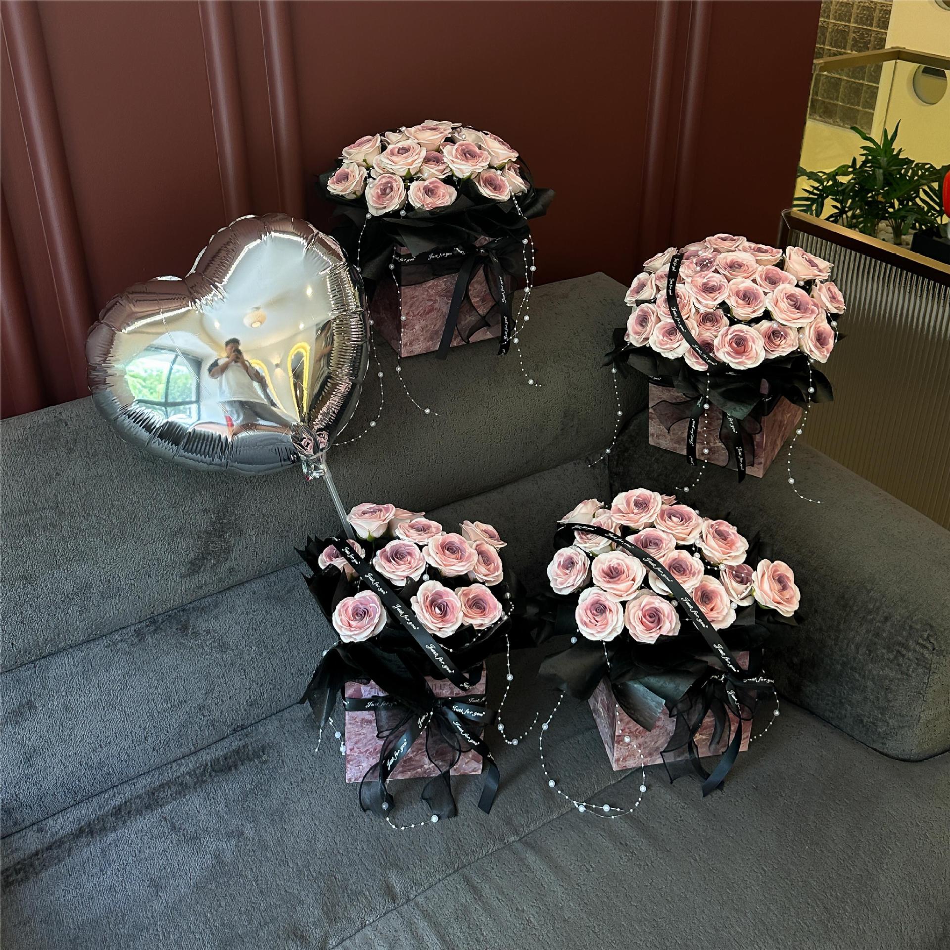 中国のバレンタインデーバレエスタイル黒梅ソースローズブーケソープフラワー模擬花束ガールフレンドの誕生日プレゼント
