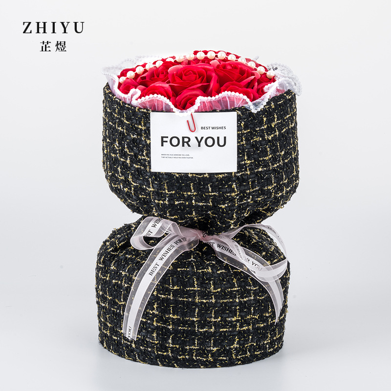 玫瑰香皂花跨境仿真花束情人节高级感生日礼物送闺蜜小香风永生花