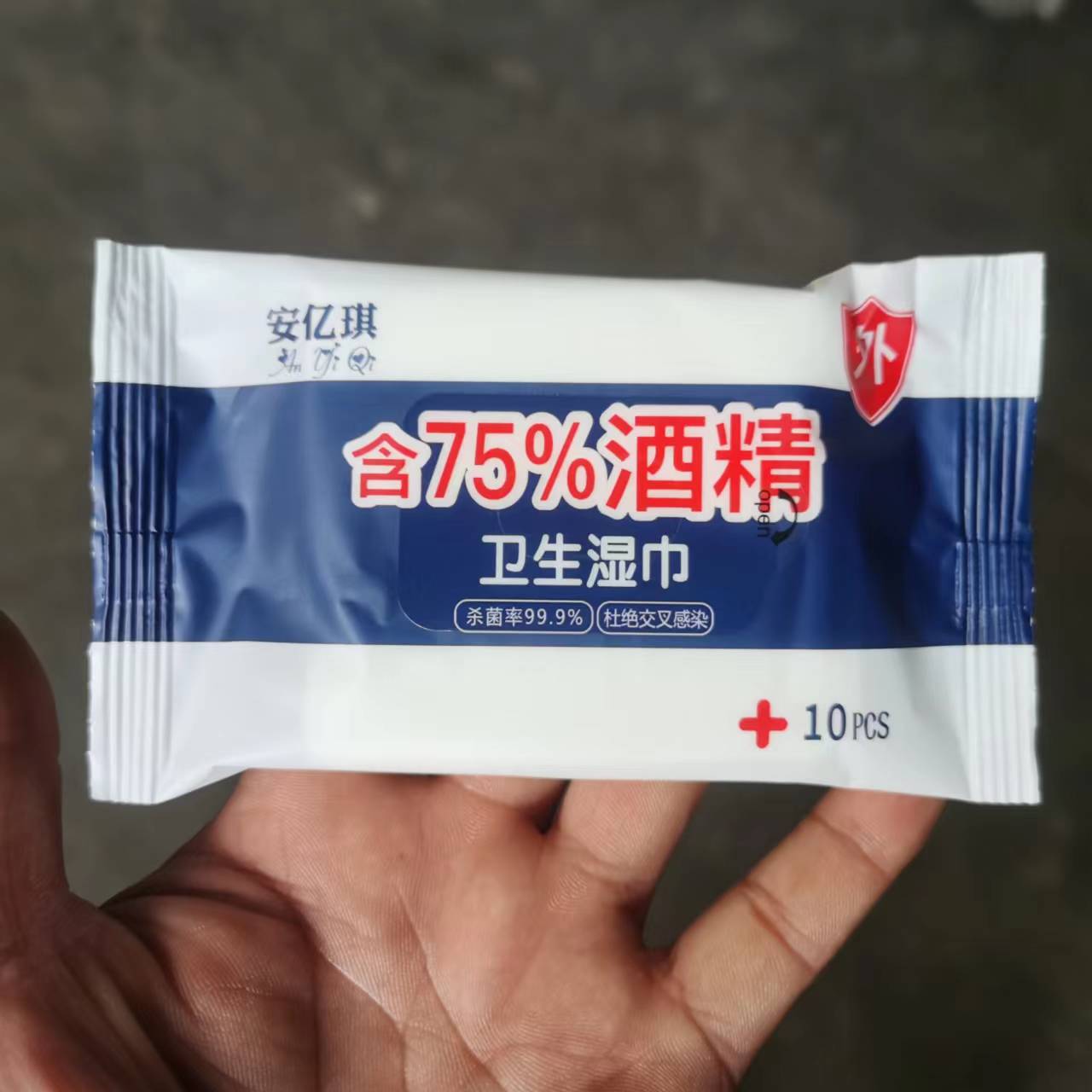 10枚入り独立包装75度アルコールウェットティッシュ衛生ウェットティッシュ携帯速乾無洗安億琪