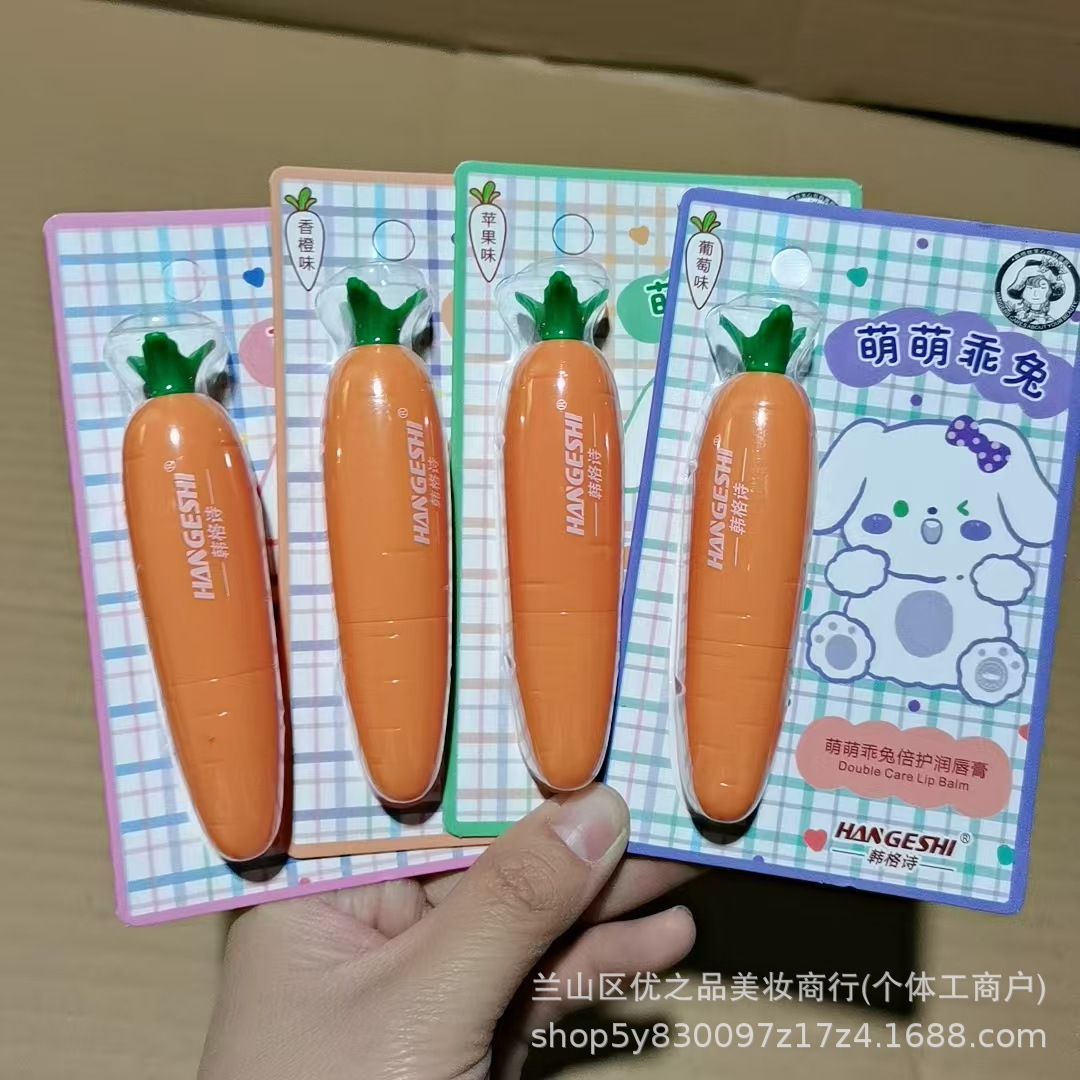 漫画の女の子のニンジンの無色の果物の味はリップクリームを潤します。