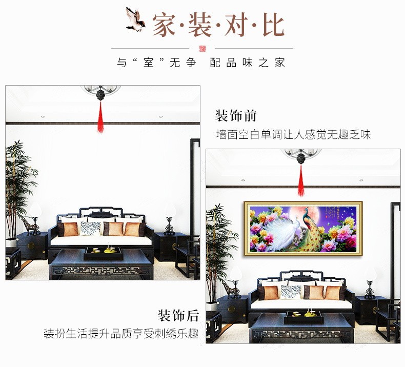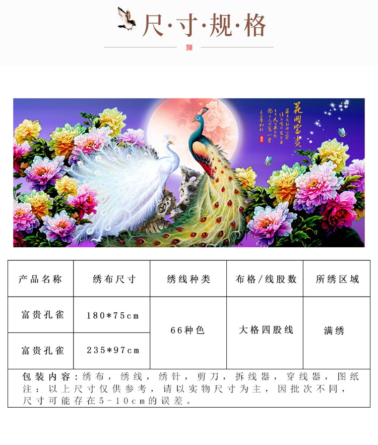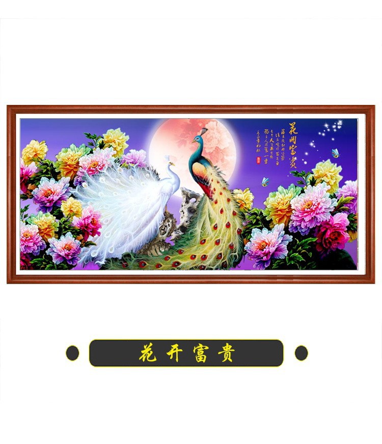 材料の非完成品は良い線の花が咲いて富貴な十字の刺繍の2024年の新型の線の刺繍の客間の孔雀の花卉の大幅な
