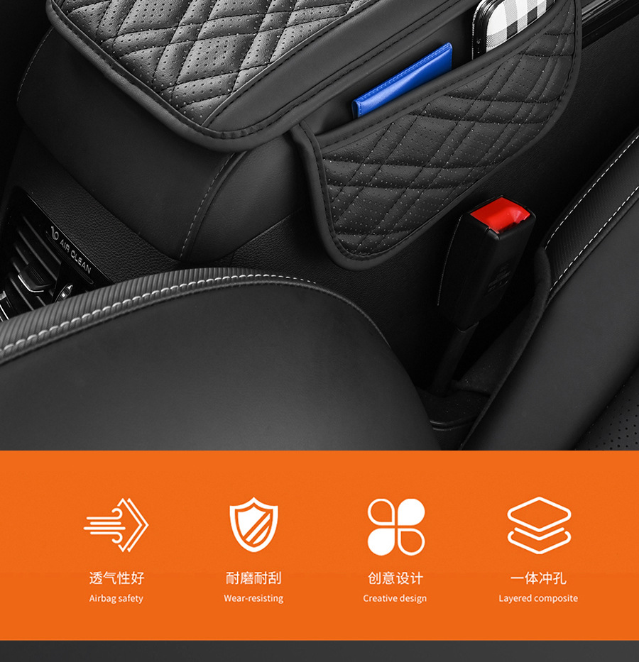 クロスボーダー通用自動車手すり箱クッション手すり箱保護カバー多機能サイドポケット付き中央手すり箱増高クッション