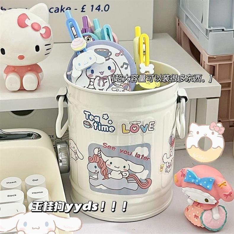 かわいいピンクの鉄のバケツイチゴ収納バケツ学生寮デスクトップ収納ボックスインリトルレッドブック同じクマペンホルダー