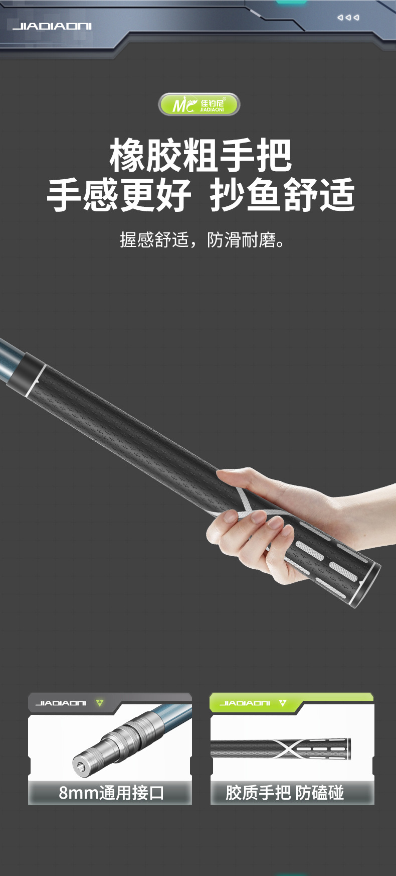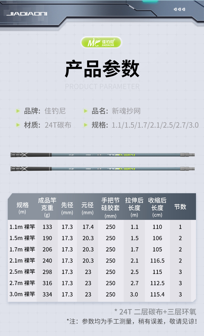 佳钓尼超轻超硬碳素抄网竿全套抄鱼捞鱼网头鱼护大物伸缩一体套装