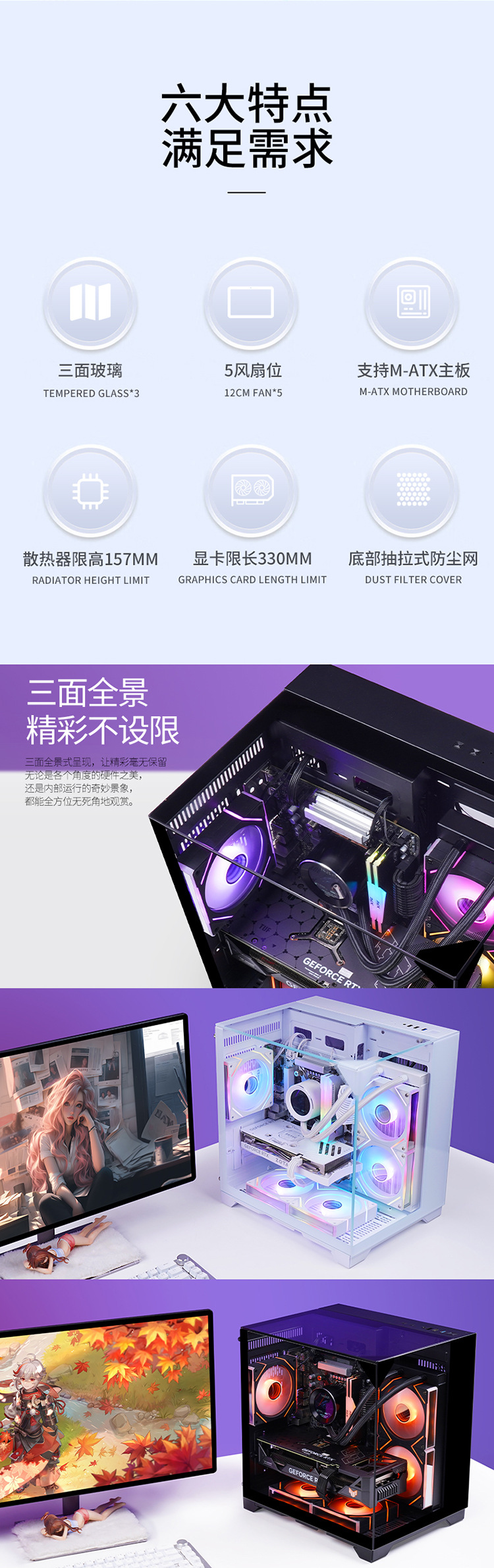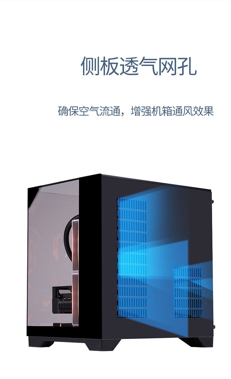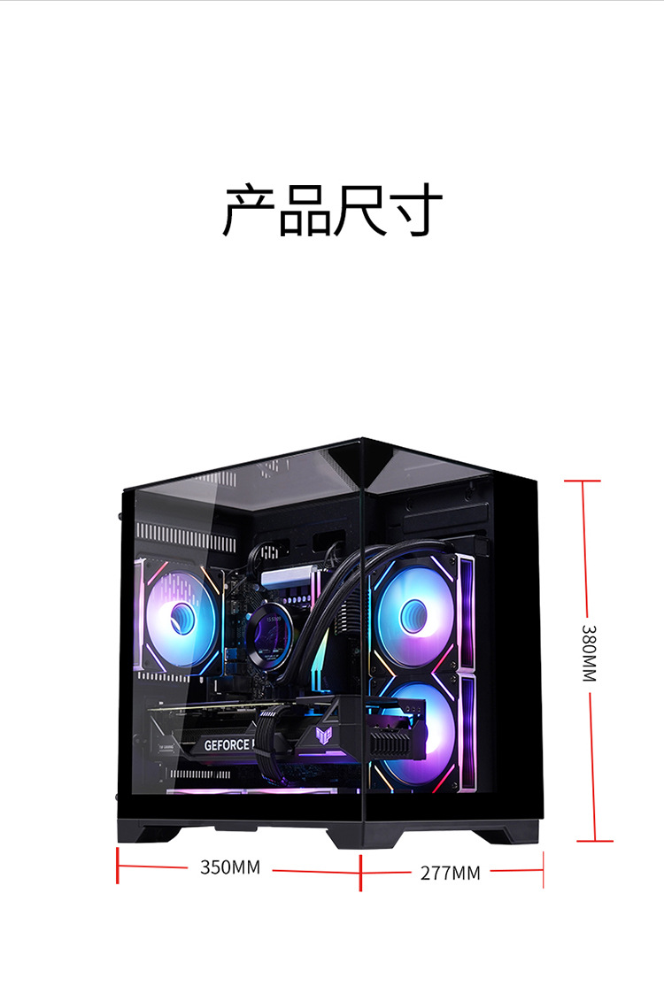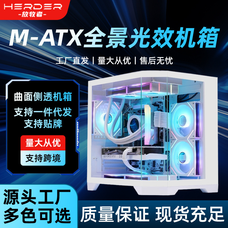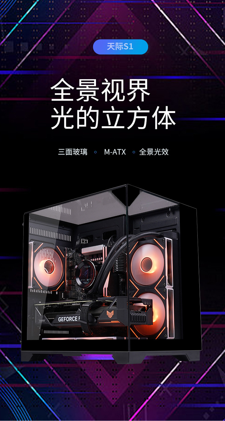 三面钢化玻璃海景房电脑机箱台式主机M-ATX水冷侧透游戏电竞机箱