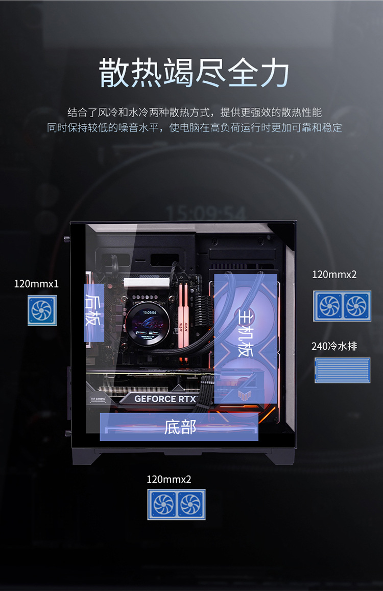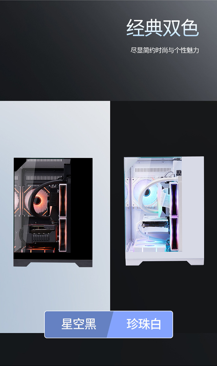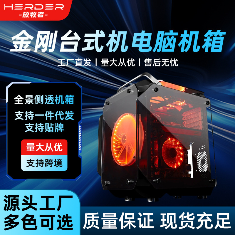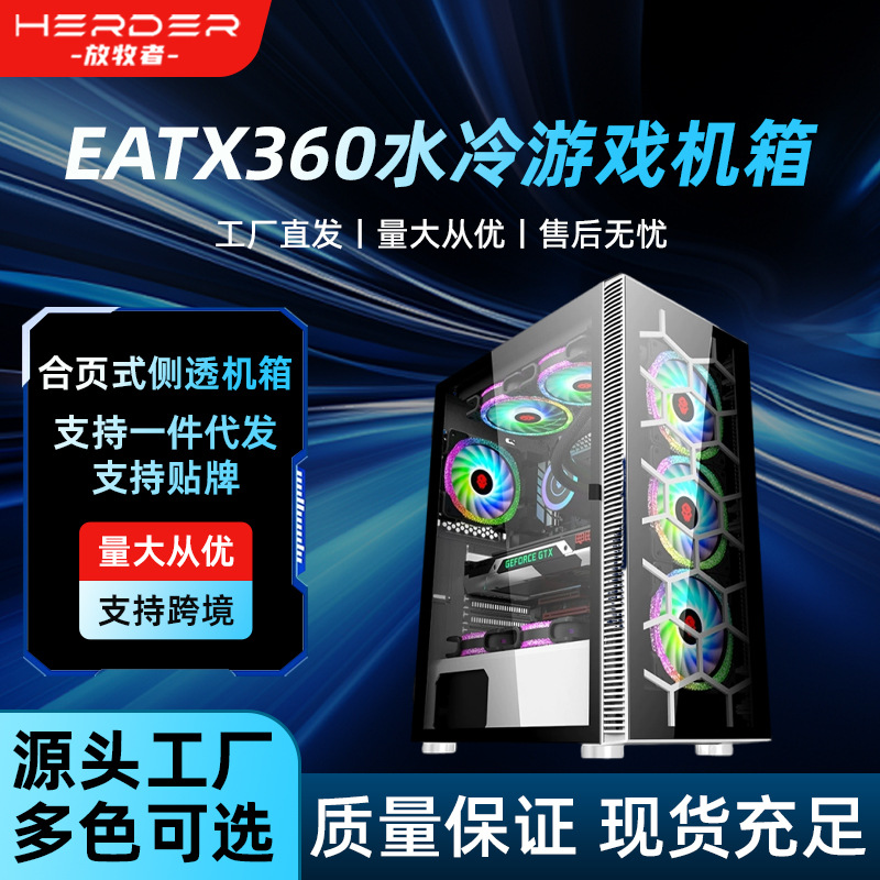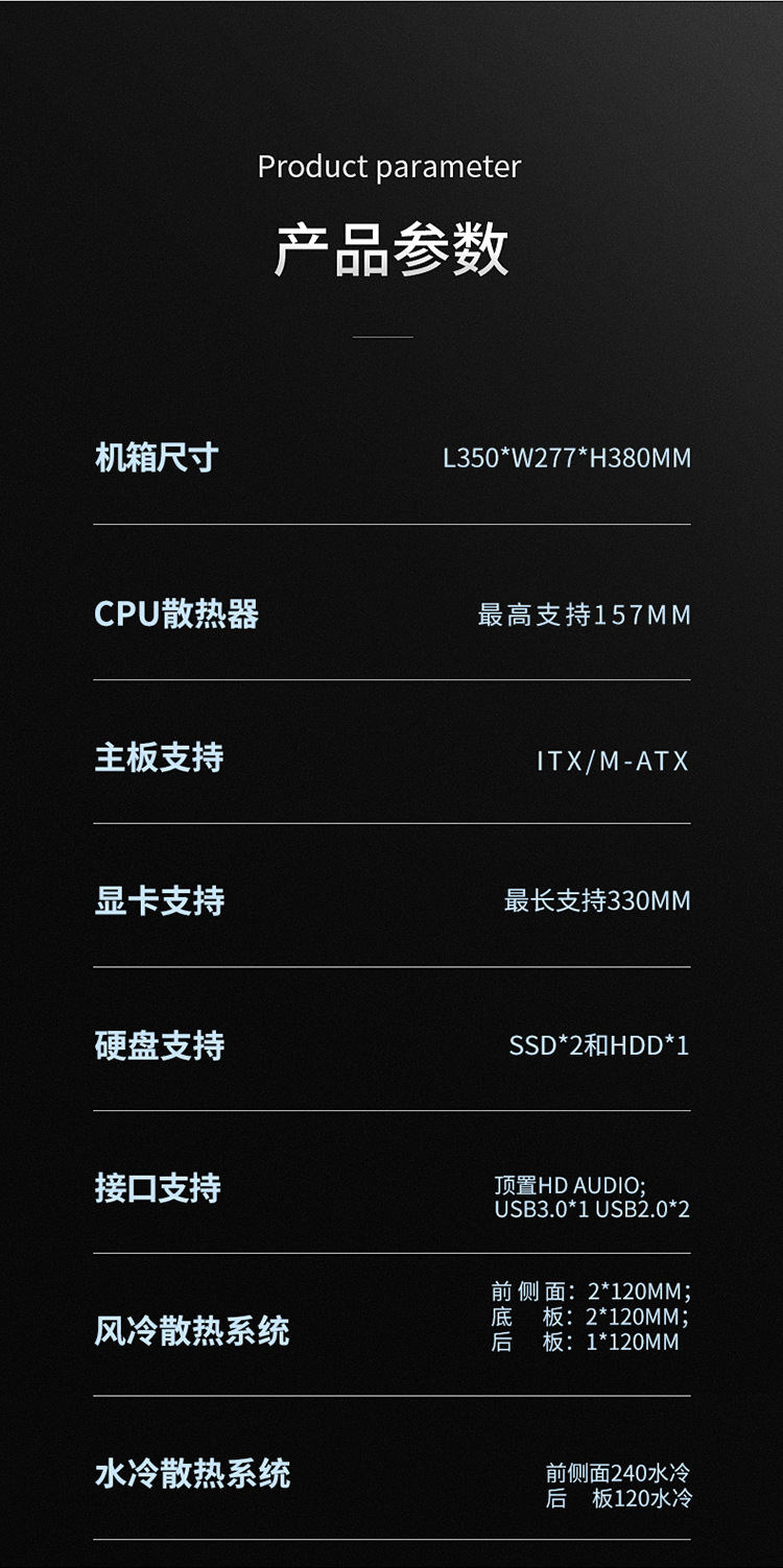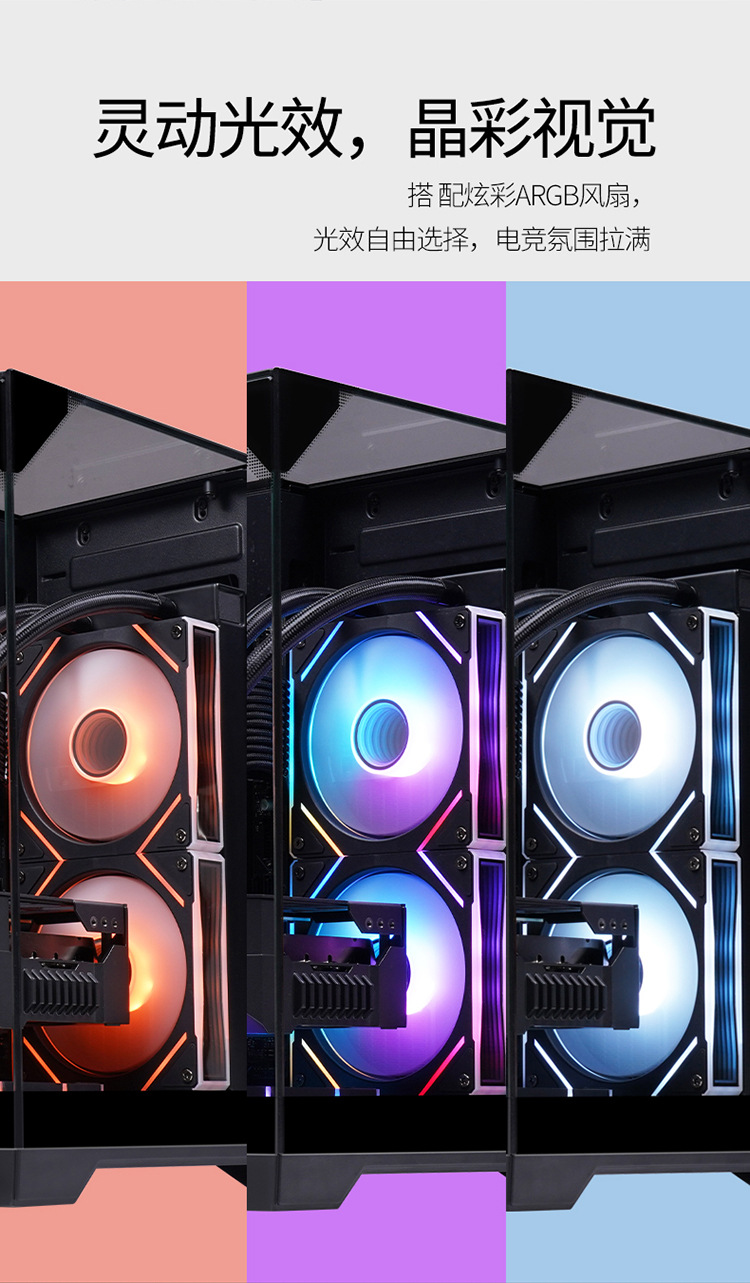 三面钢化玻璃海景房电脑机箱台式主机M-ATX水冷侧透游戏电竞机箱
