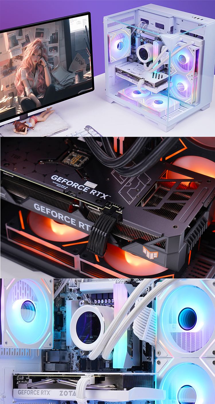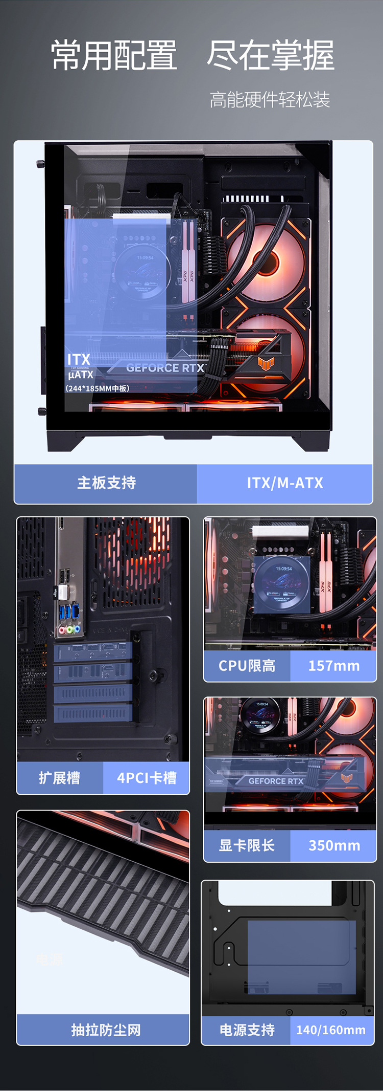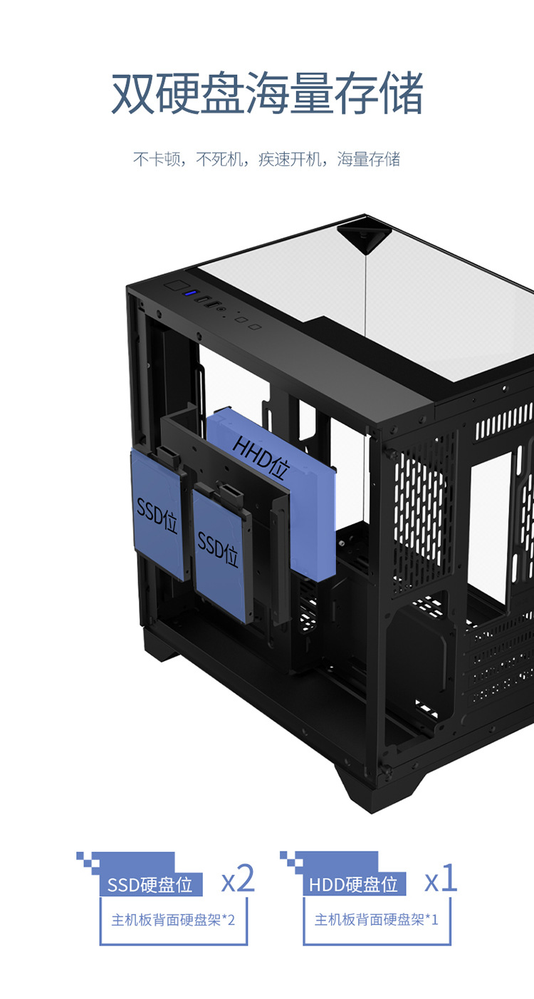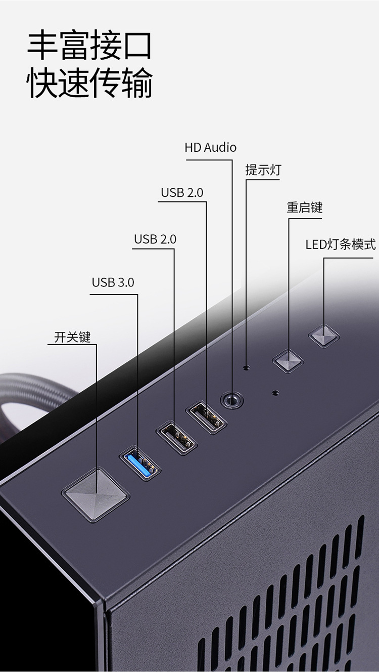 三面钢化玻璃海景房电脑机箱台式主机M-ATX水冷侧透游戏电竞机箱