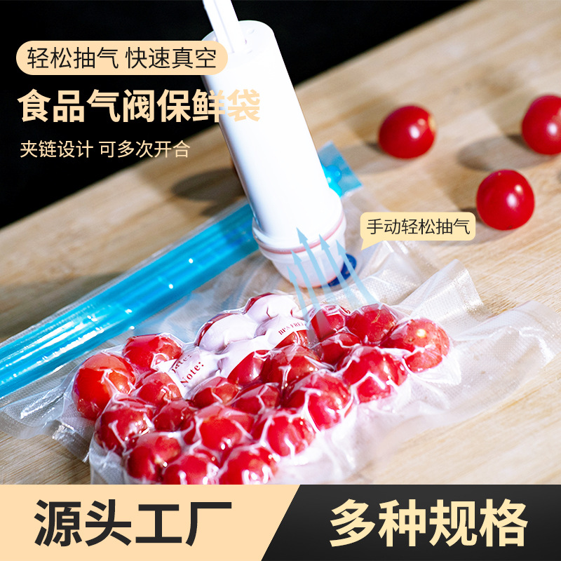 家庭用エアバルブ真空野菜と果物の鮮度保持袋エアポンプジッパー密封袋テクスチャエアバルブ真空袋