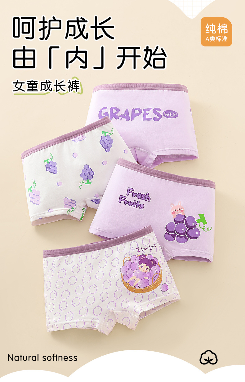 儿童内裤纯棉女童平角裤婴童透气中大小童四角小女孩宝宝底裤抑菌