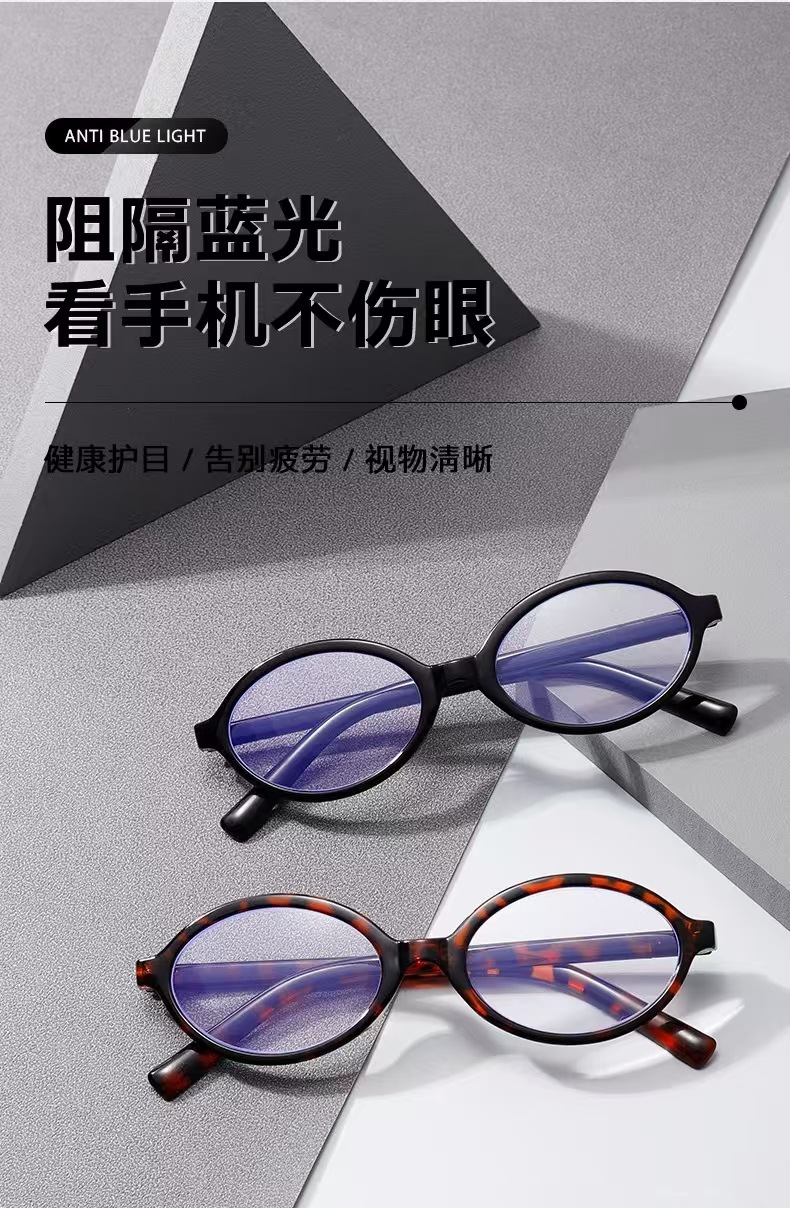張元英は同じタイプのファッションの青い光の老眼鏡の新型の復古の楕円の小さい枠のネットの赤い装飾の百合の平光の鏡を防ぎます。