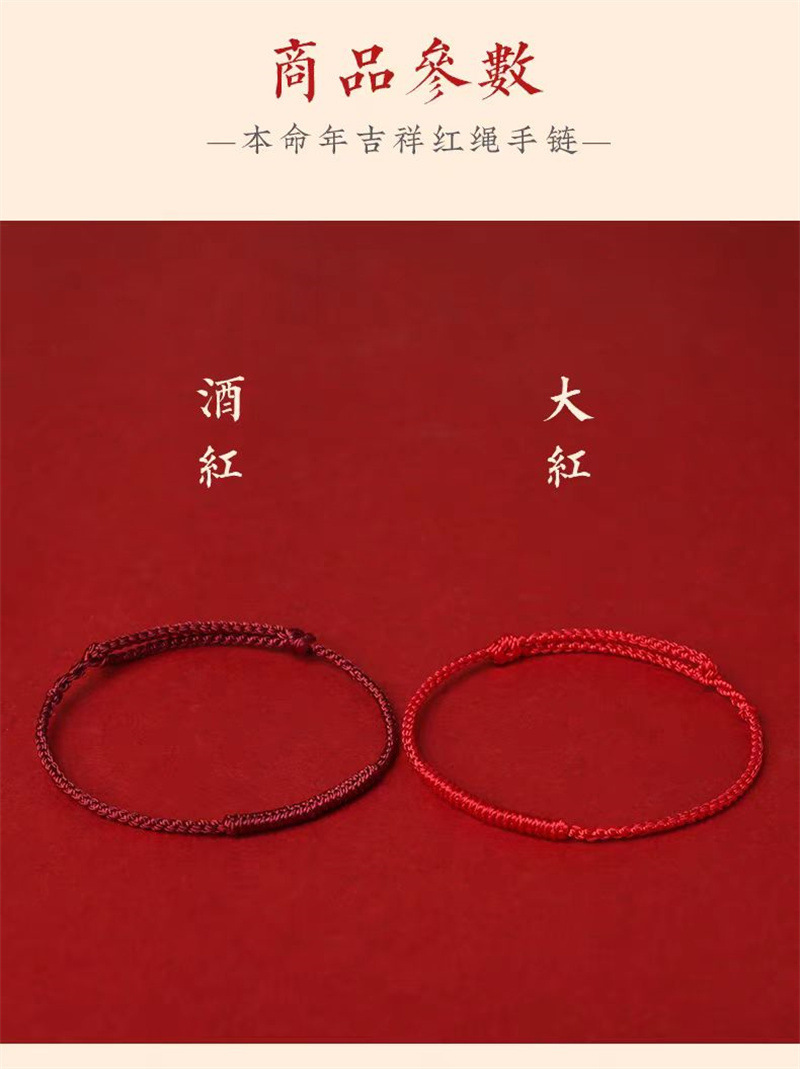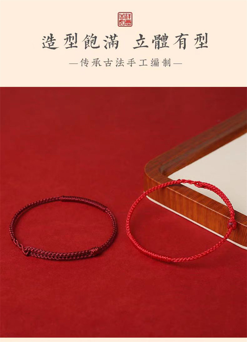 本命年用赤い手紐、シンプルな赤い手紐ブレスレット、女性用赤い手紐、男性用カップルギフト、足首用編み紐、金喜