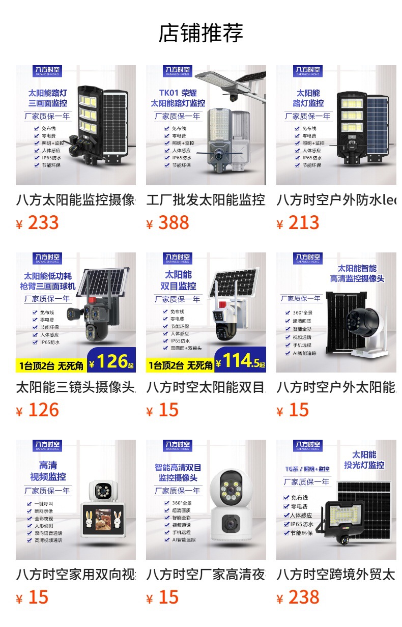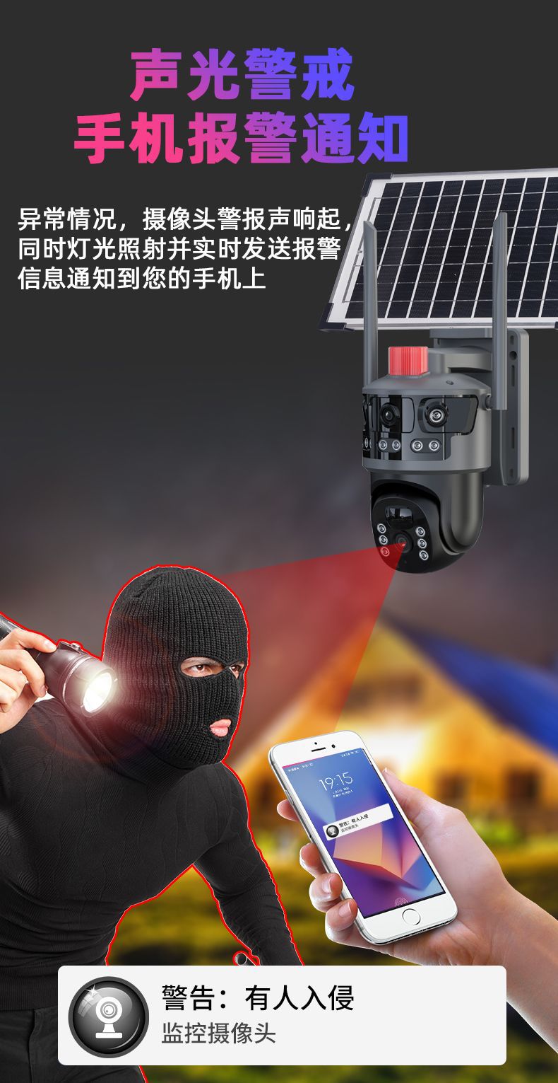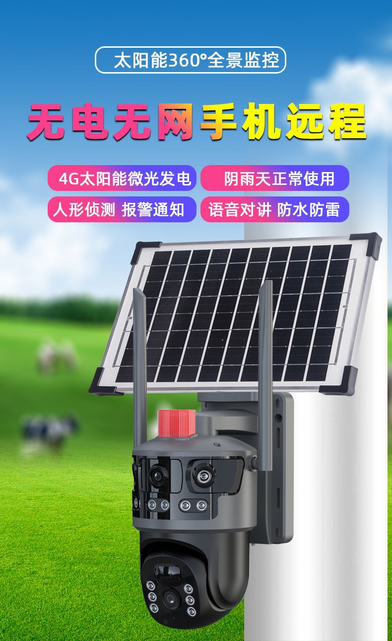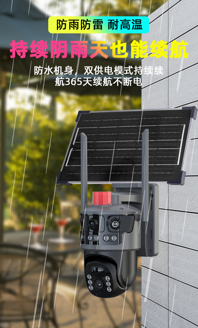 八方時空太陽両眼監視カメラ電源供給パノラマ死角なし両画面屋外防水監視