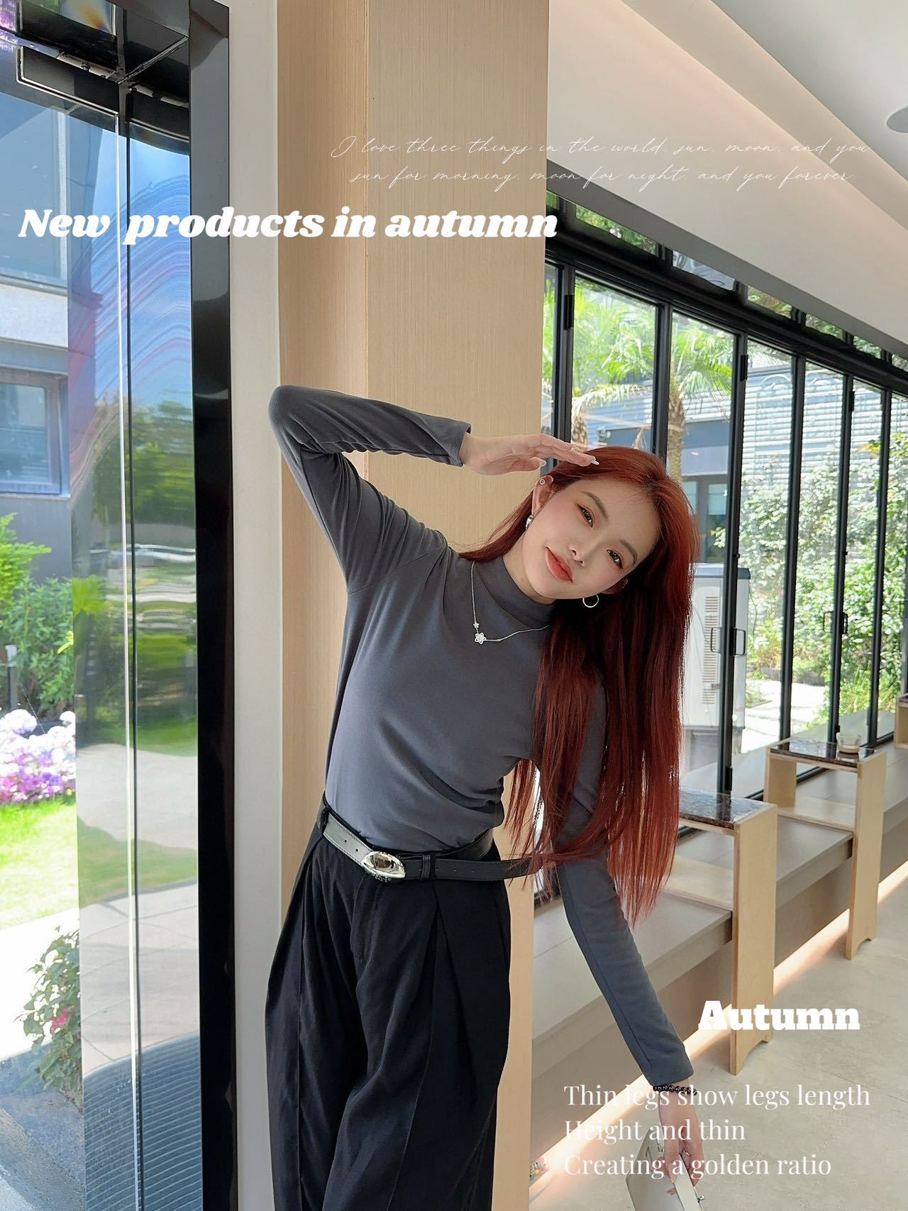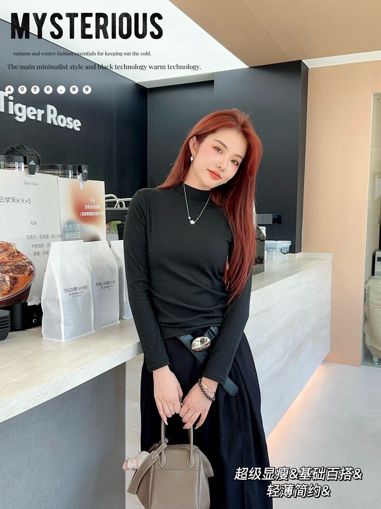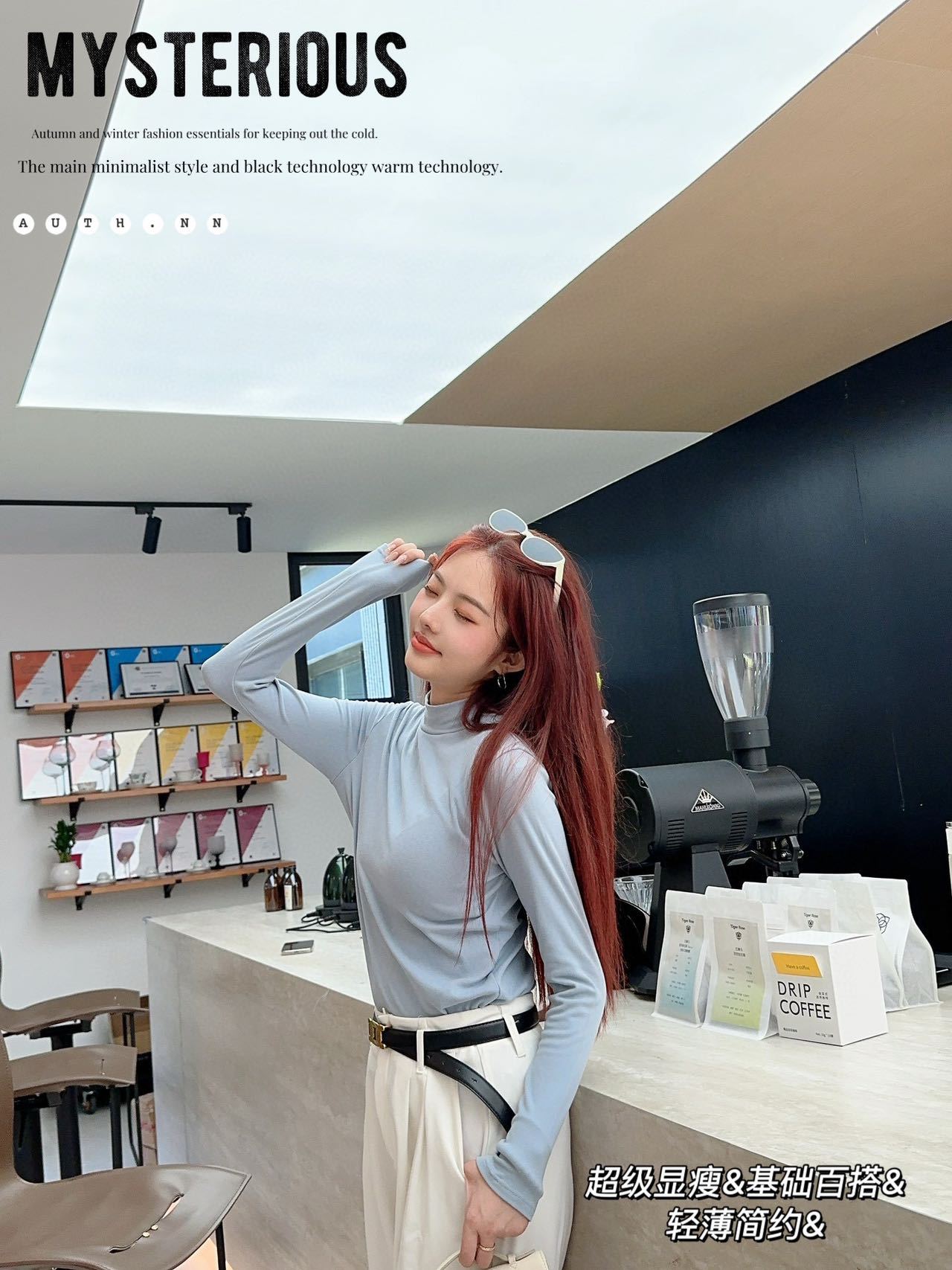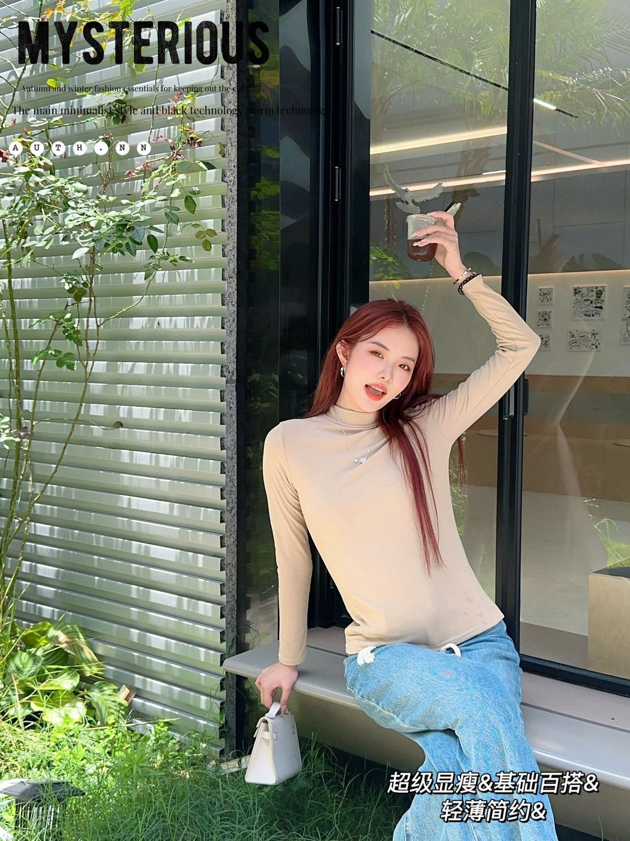 ハーフタートルネックマスク対応インナーシャツ ミルクシルク肌に優しい高伸縮性スリムフィット長袖トップス 秋冬文芸レトロ風万能スタイル