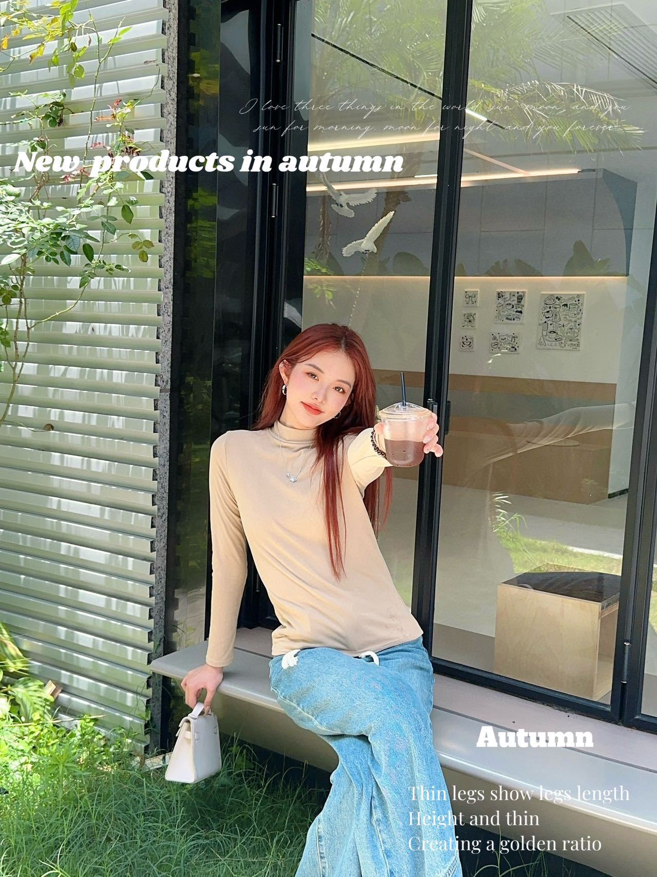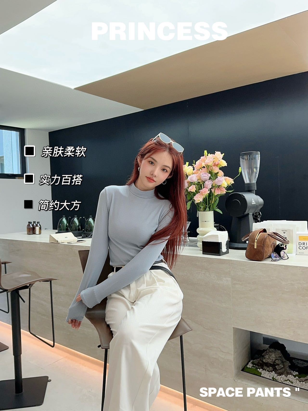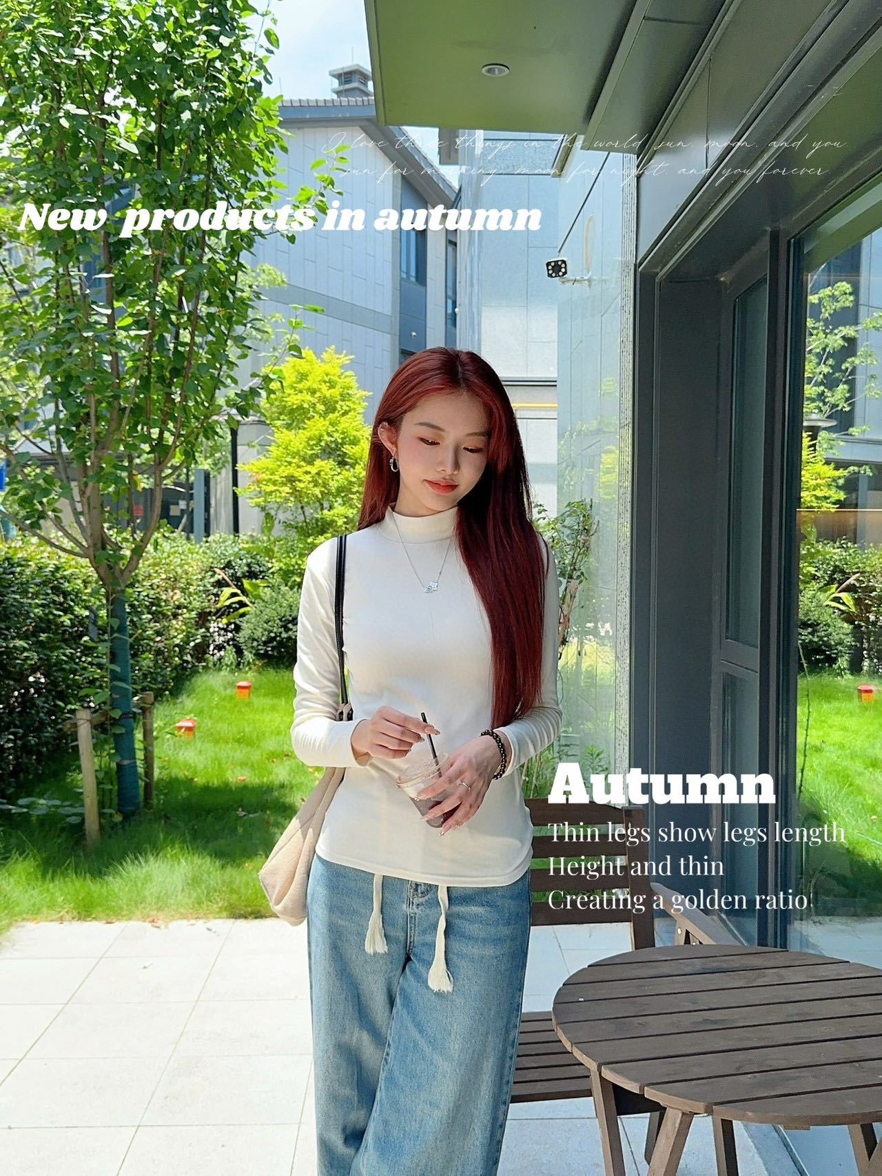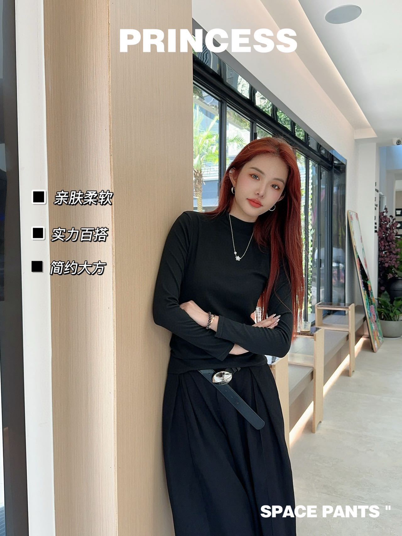 ハーフタートルネックマスク対応インナーシャツ ミルクシルク肌に優しい高伸縮性スリムフィット長袖トップス 秋冬文芸レトロ風万能スタイル