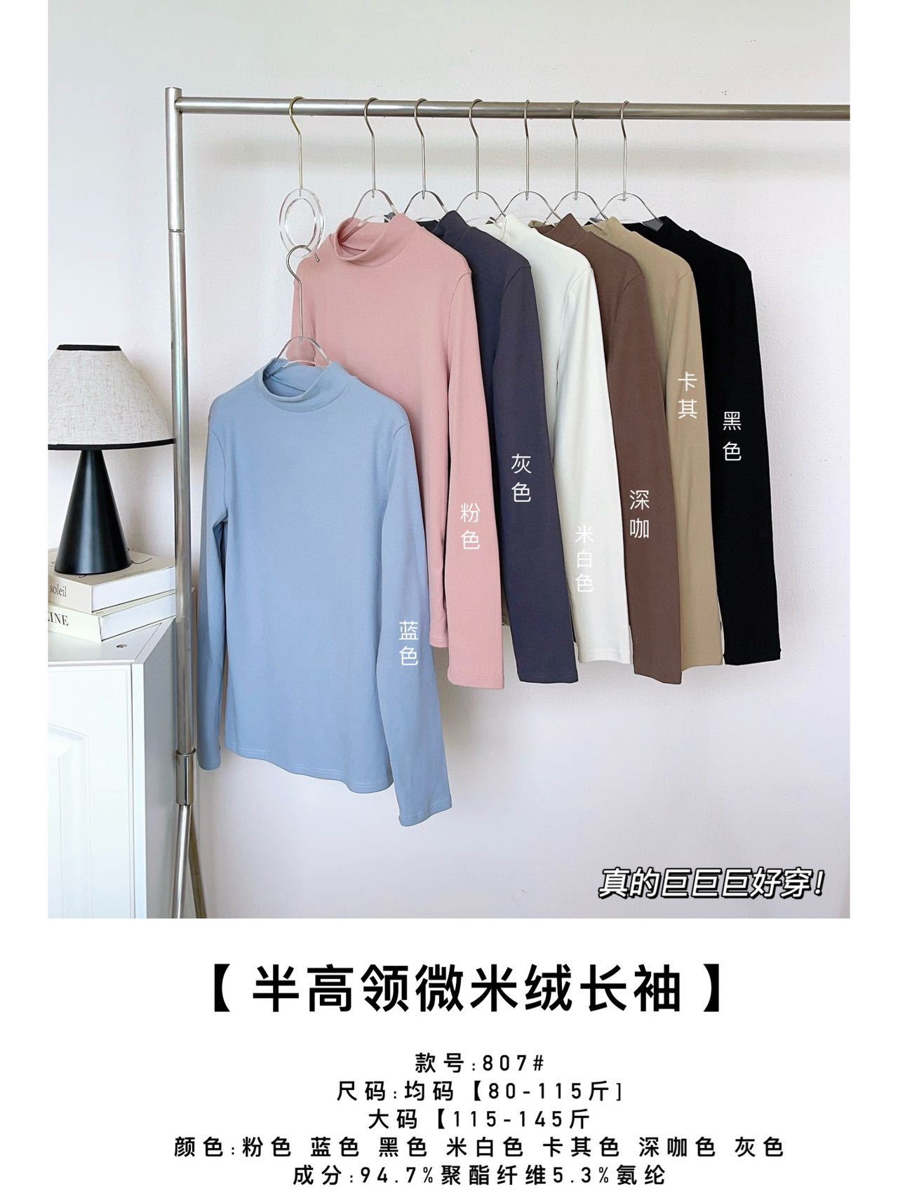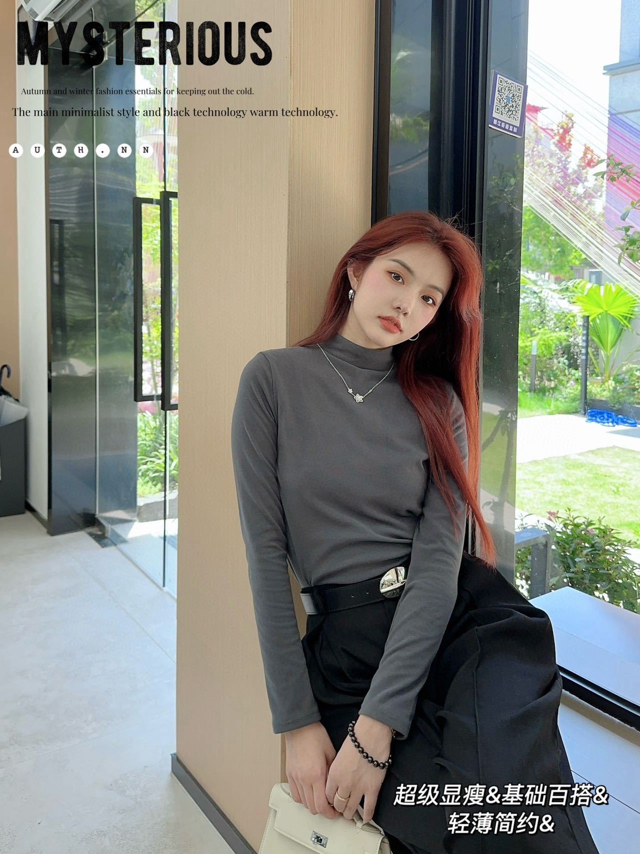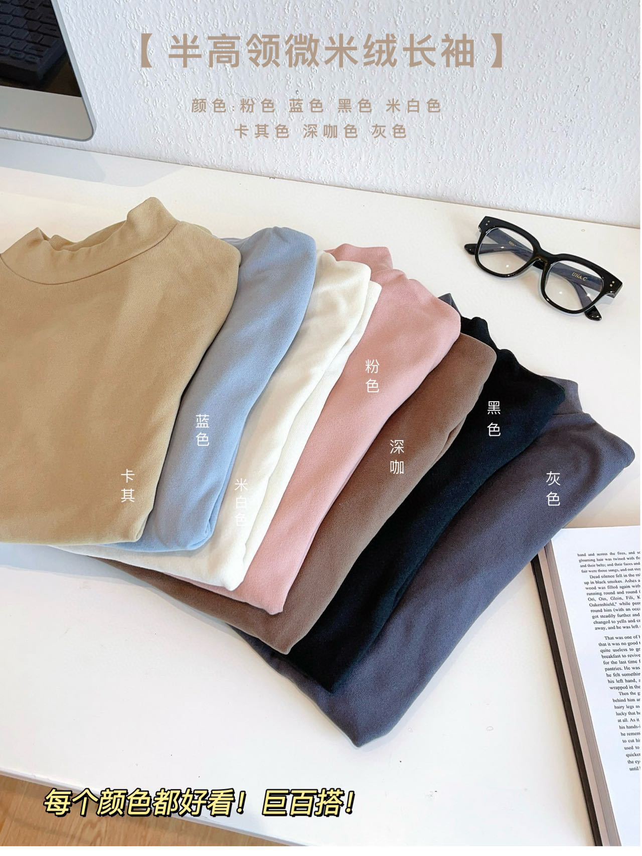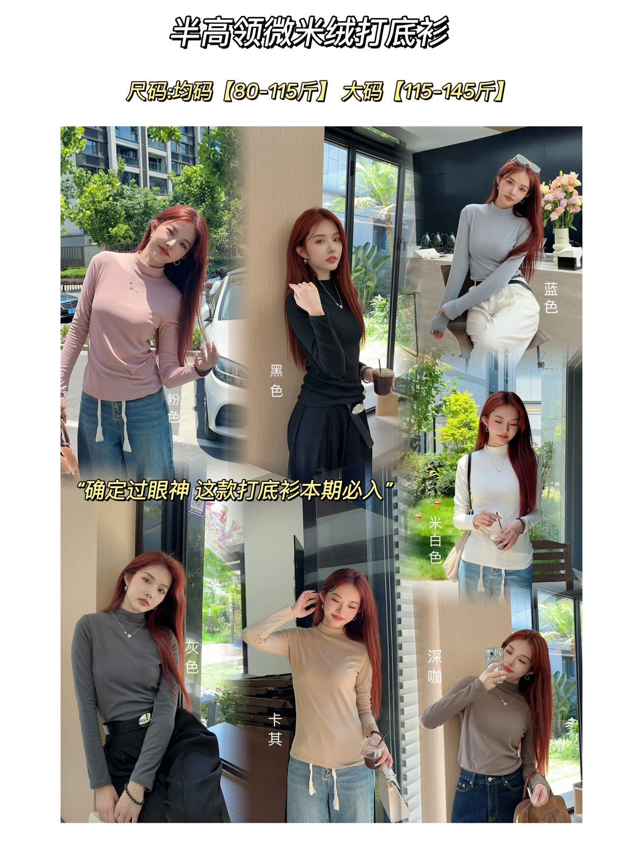 加绒加厚中领打底衫女秋冬新款内搭显瘦磨毛保暖长袖打底T恤上衣