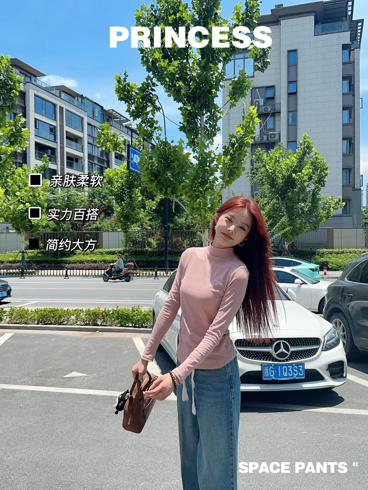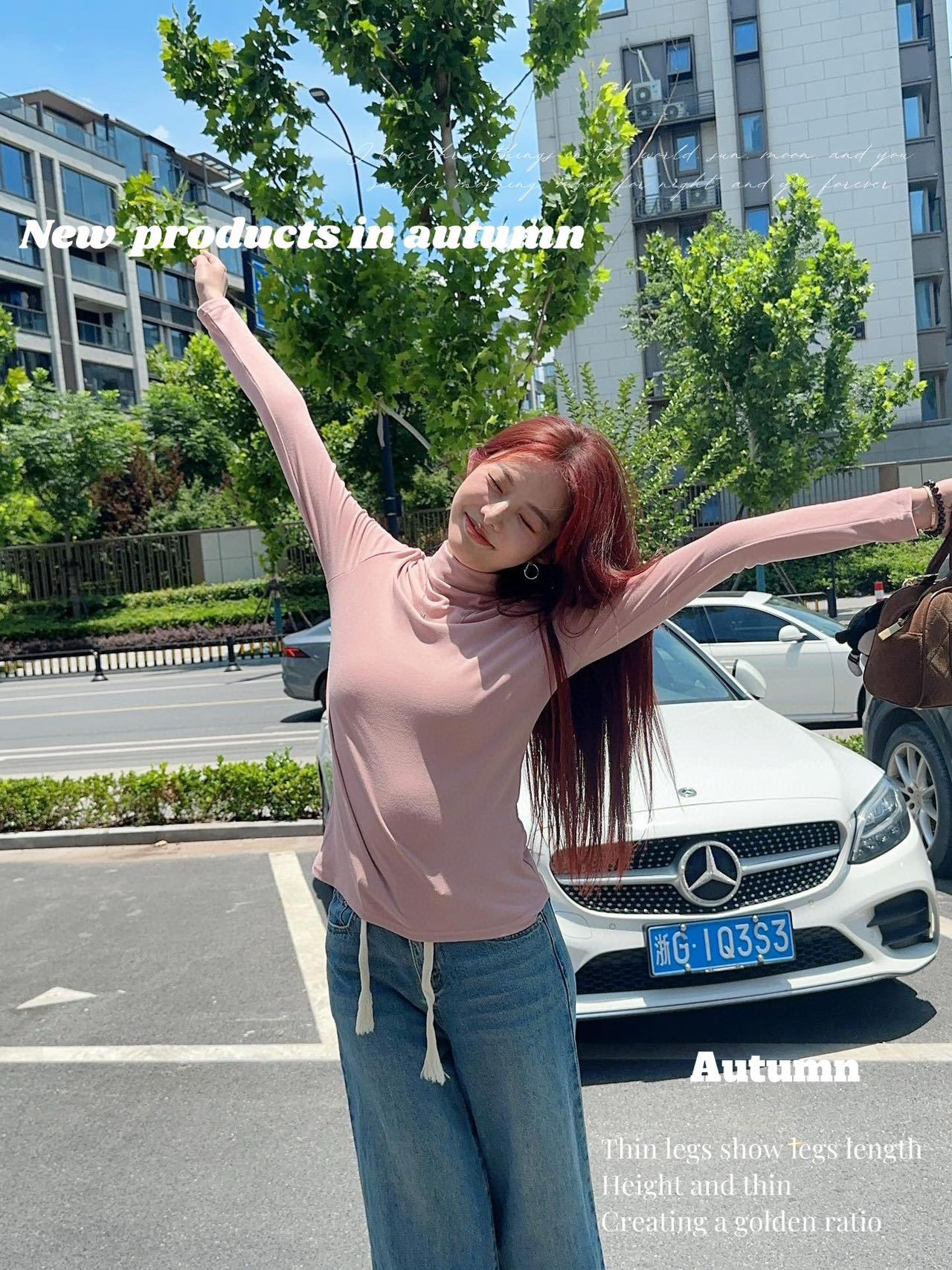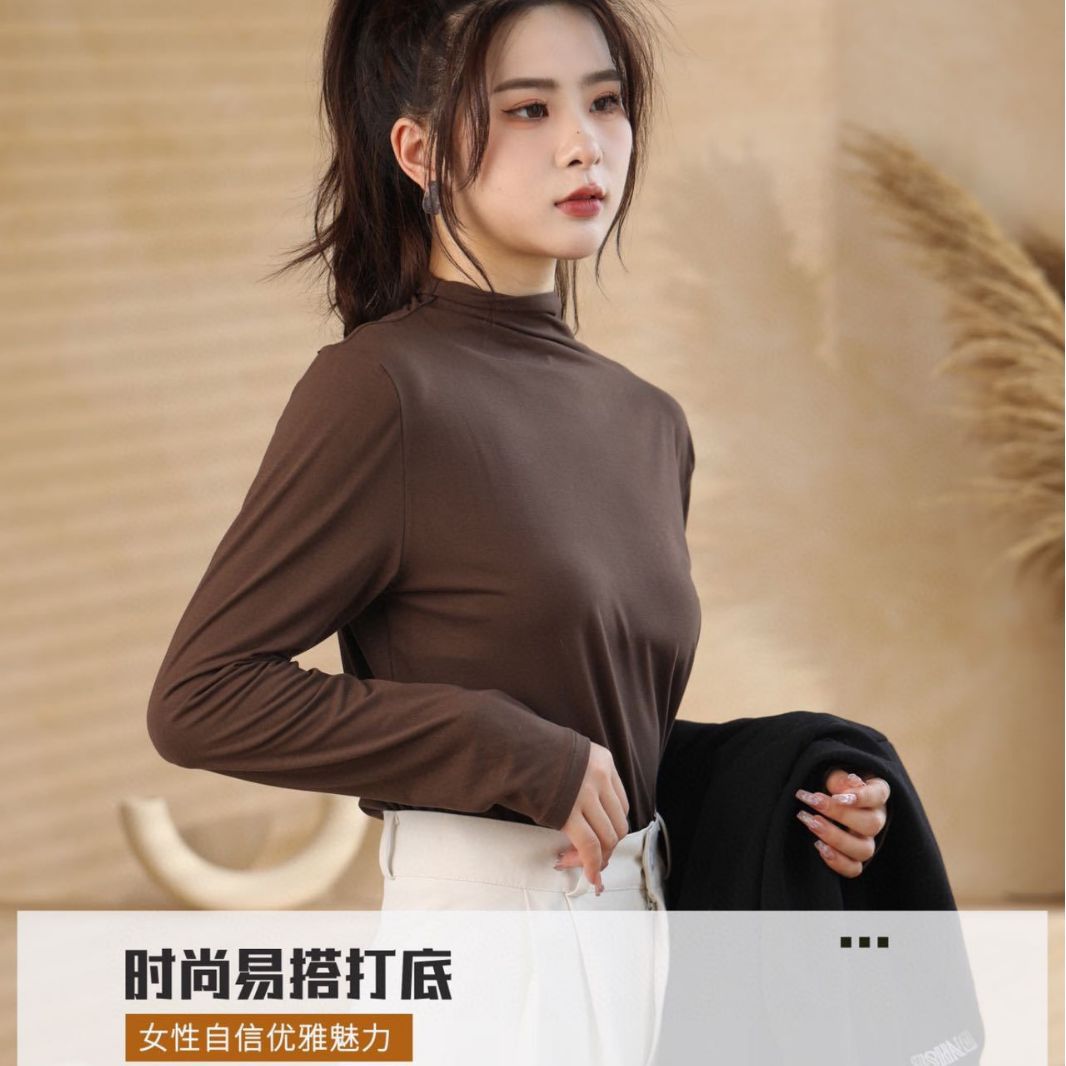 九色ハーフタートルネックマスク用ベースシャツ レディース 春秋 モダール素材 肌に優しい スリムフィット 多用途トップス おしゃれで万能