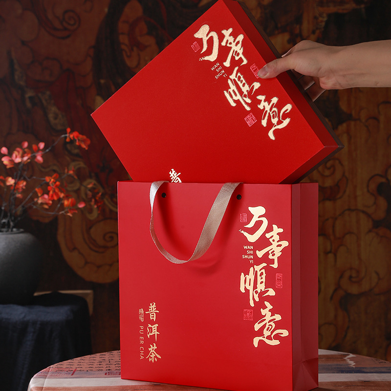 新款357克装茶饼礼盒通用普洱茶福鼎白茶茶饼包装盒新年礼盒空盒