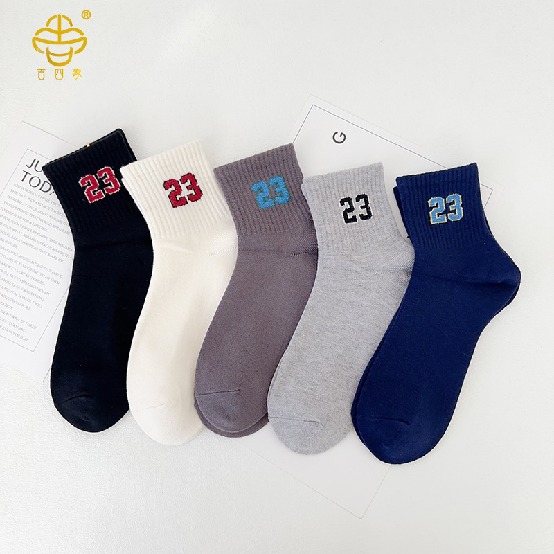 吉四象の靴下の男性の秋冬の新型のファッションブランドのアルファベットの中筒の靴下の精練綿の学生の綿の靴下のスポーツの靴下の少年の靴下