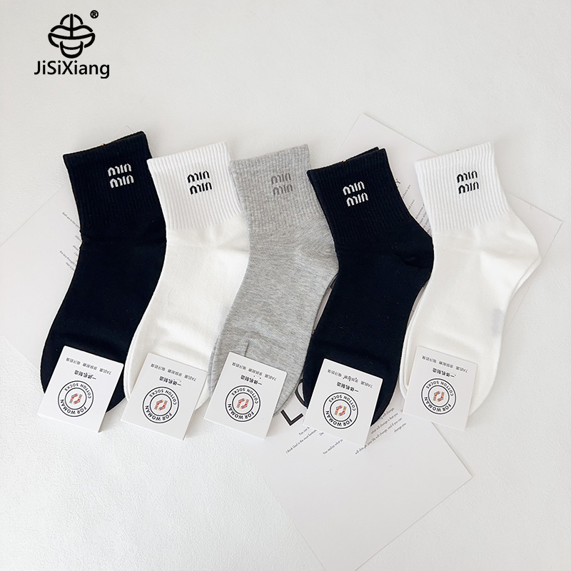 吉四象の靴下の女性の春の新型のins潮牌のアルファベットの短い靴下の精練綿の韓国版の女性の靴下の白い学生の靴下