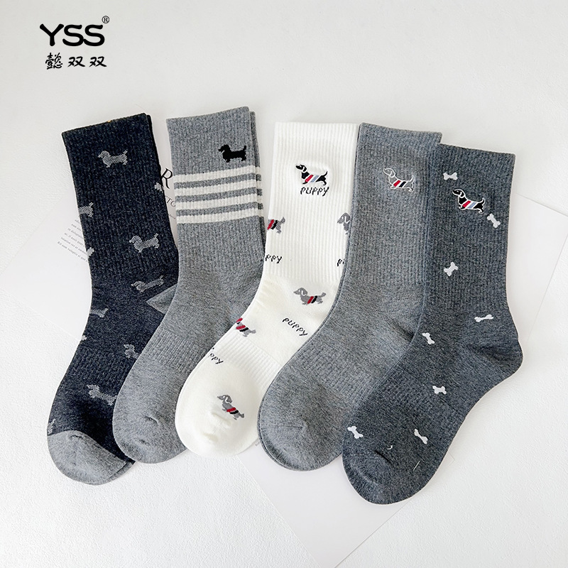 吉四象袜子女秋冬新款卡通小狗刺绣高筒袜精梳棉韩版字母堆堆棉袜