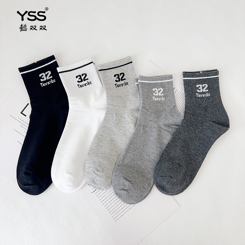 吉四象ソックス メンズ 秋新作 トレンドブランド レタードデザイン ショートソックス コーマ綿 ノンボーン 学生 白ソックス スポーツ ジュニアソックス