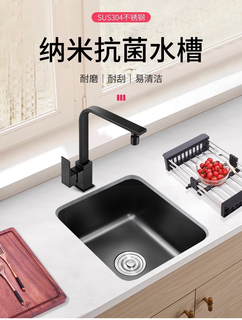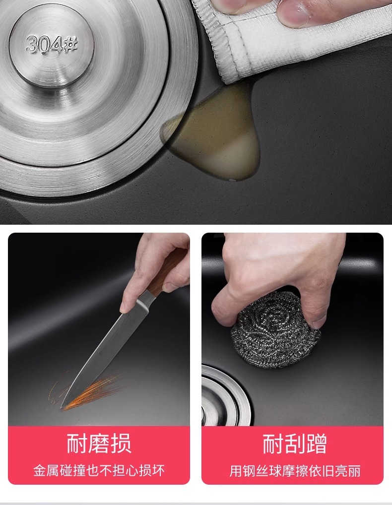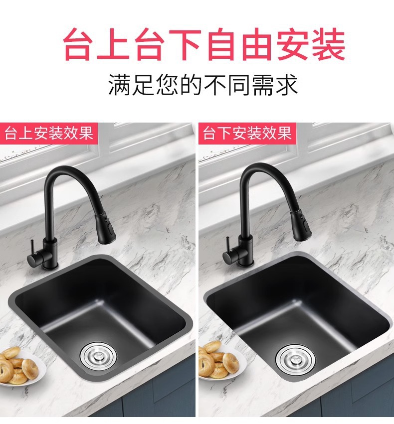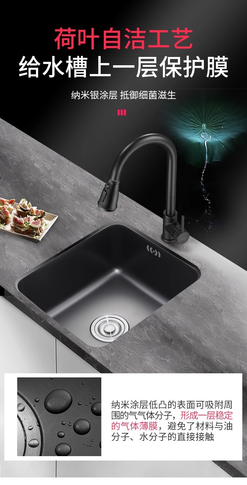 洗菜单槽黑色纳米一体台下盆 sus304厨房洗碗池柜一体不锈钢水槽