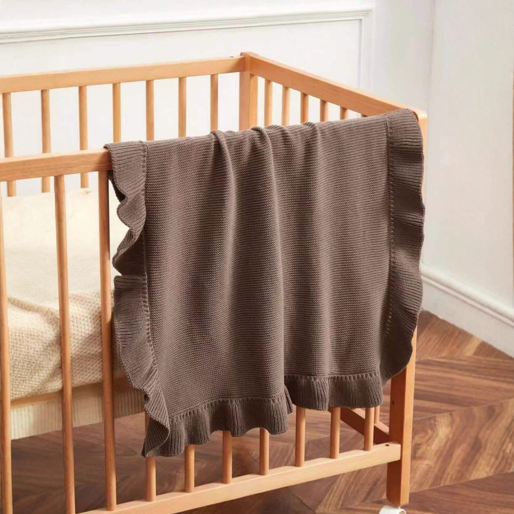 跨境批发新款热卖纯棉荷叶边婴儿纯色针织盖毯抱毯宝宝推车盖被