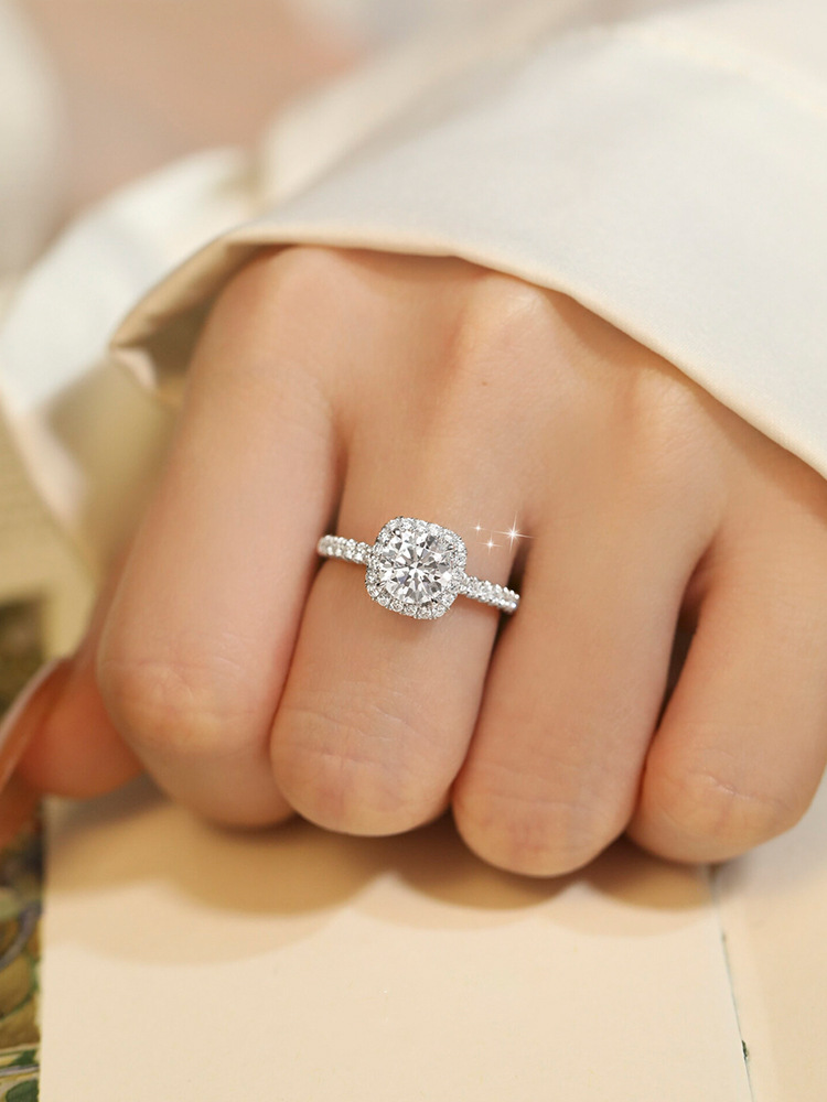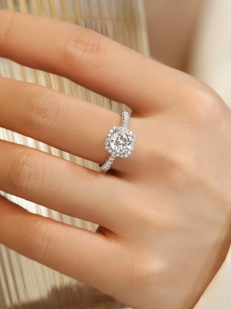 豪華なバッグの莫桑石は結婚指輪のプロポーズ指輪をシミュレートします。s925銀1カラットは彼女にプレゼントします。