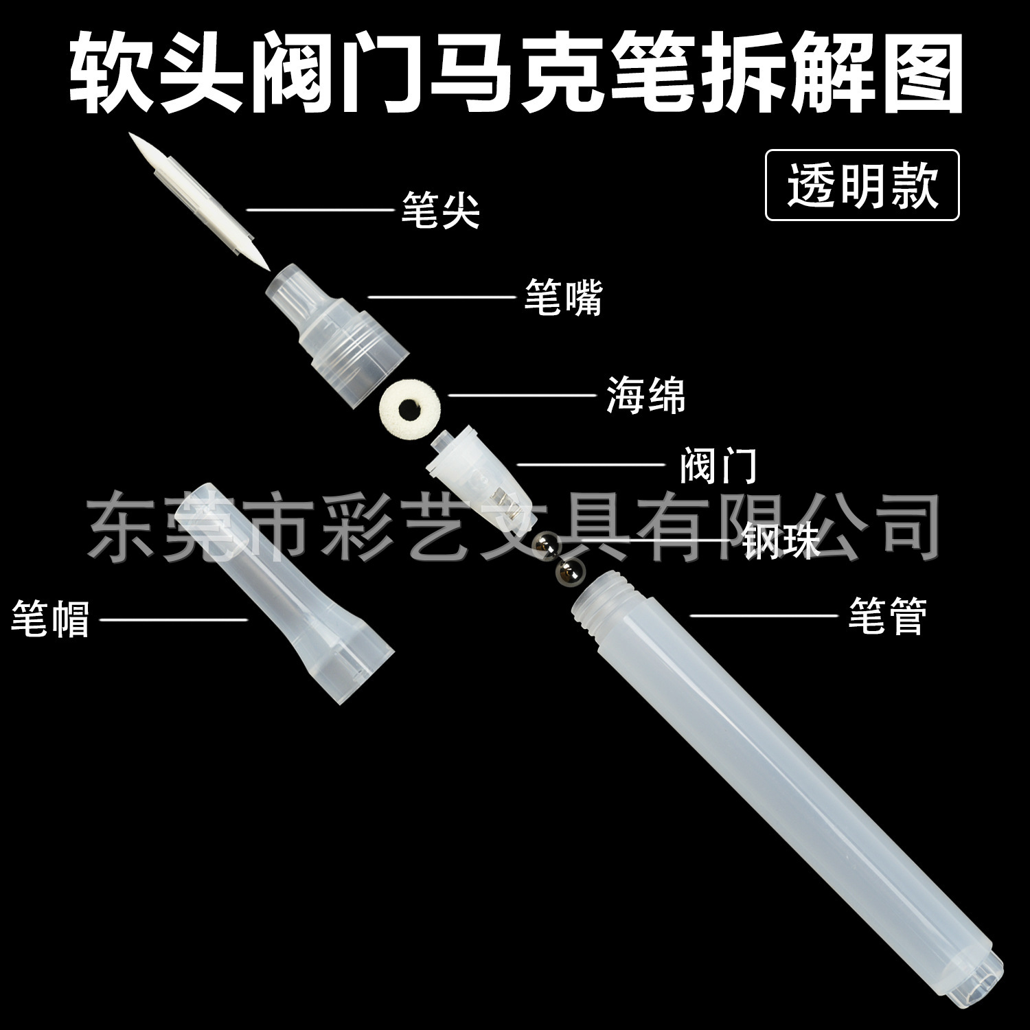 ソフトヘッドバルブ空ペン部品ペイントペンpp透明空ペンペンプラスチック部品空ペンマークペン