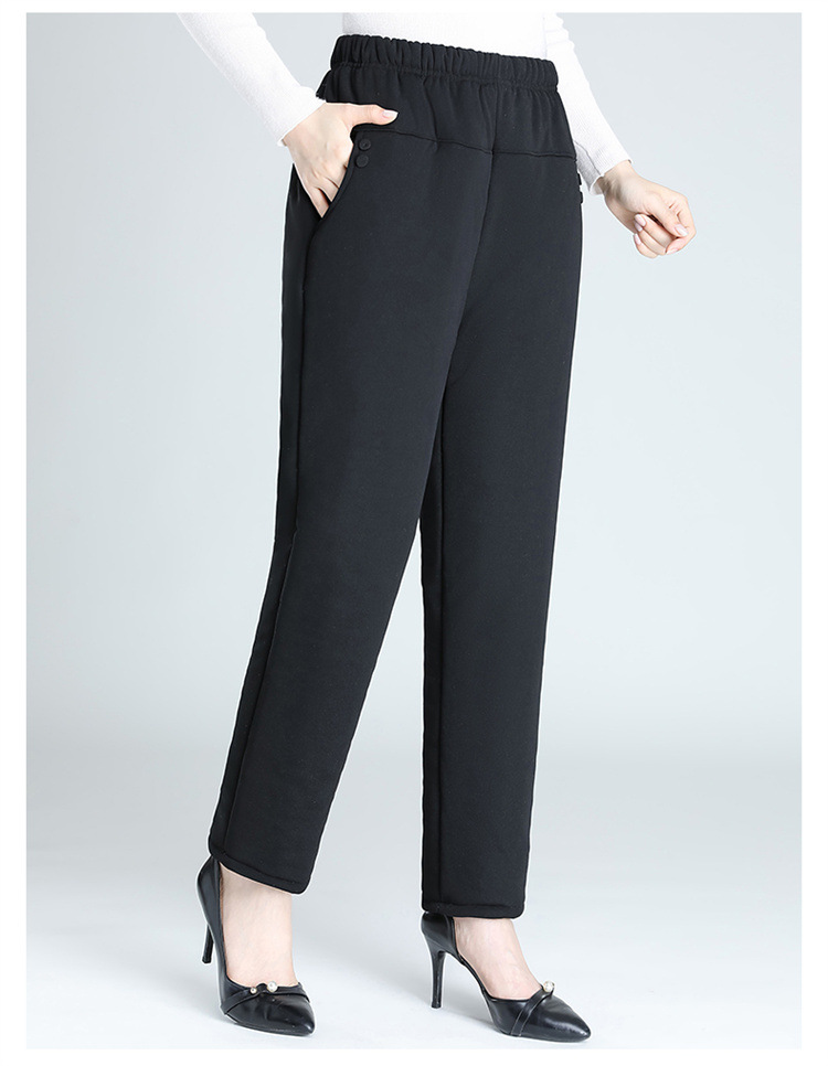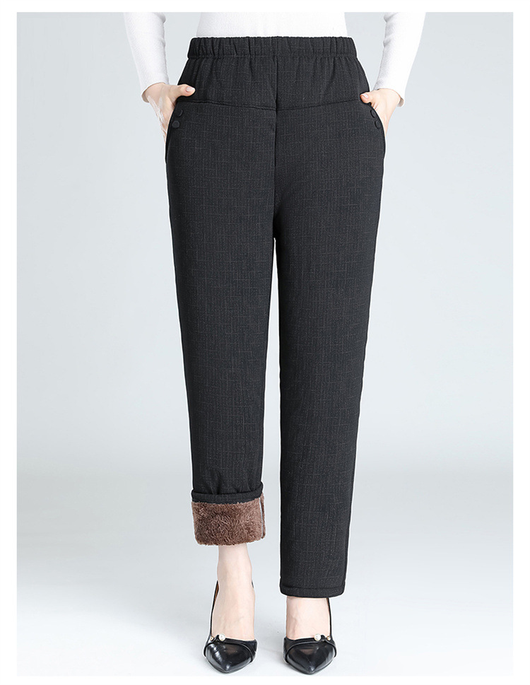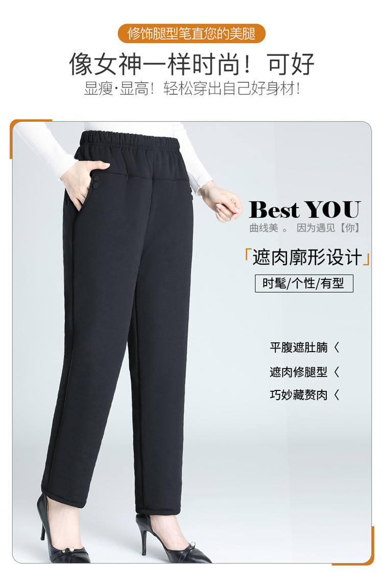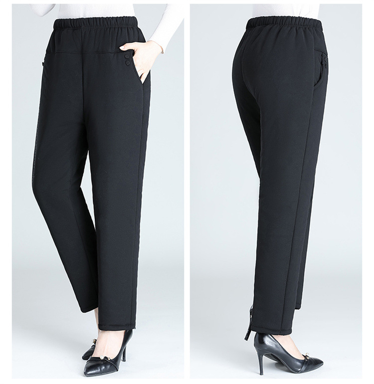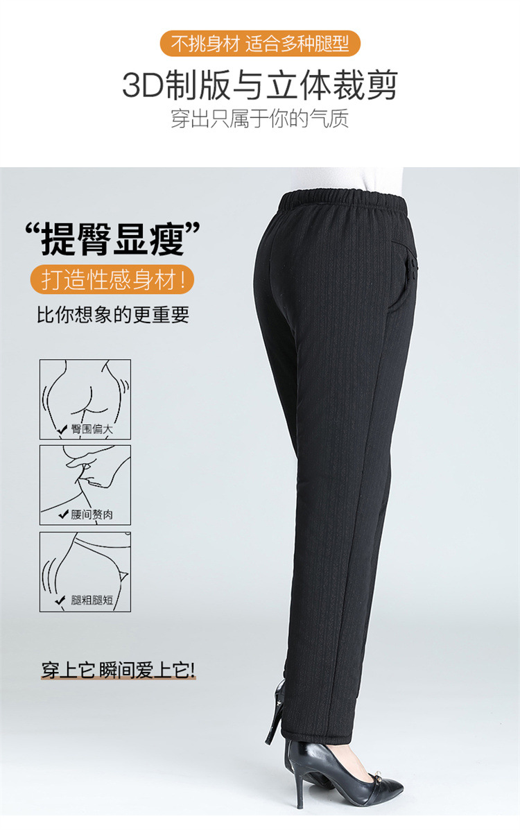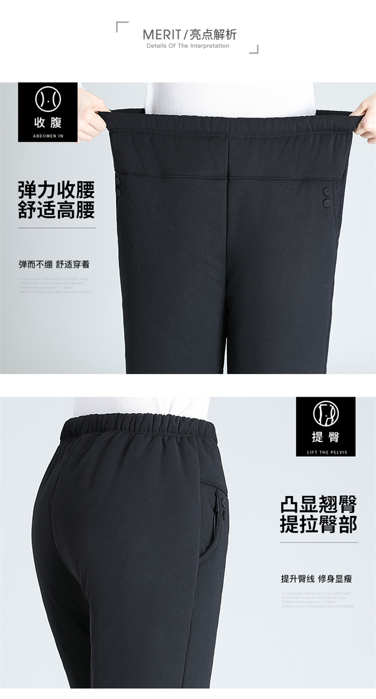 中年の女性のズボンとベルベットの厚い保温ズボンの中で高齢者の春秋服のお母さんのカジュアルなズボンの弾力性のおばあさんのストレートパンツ