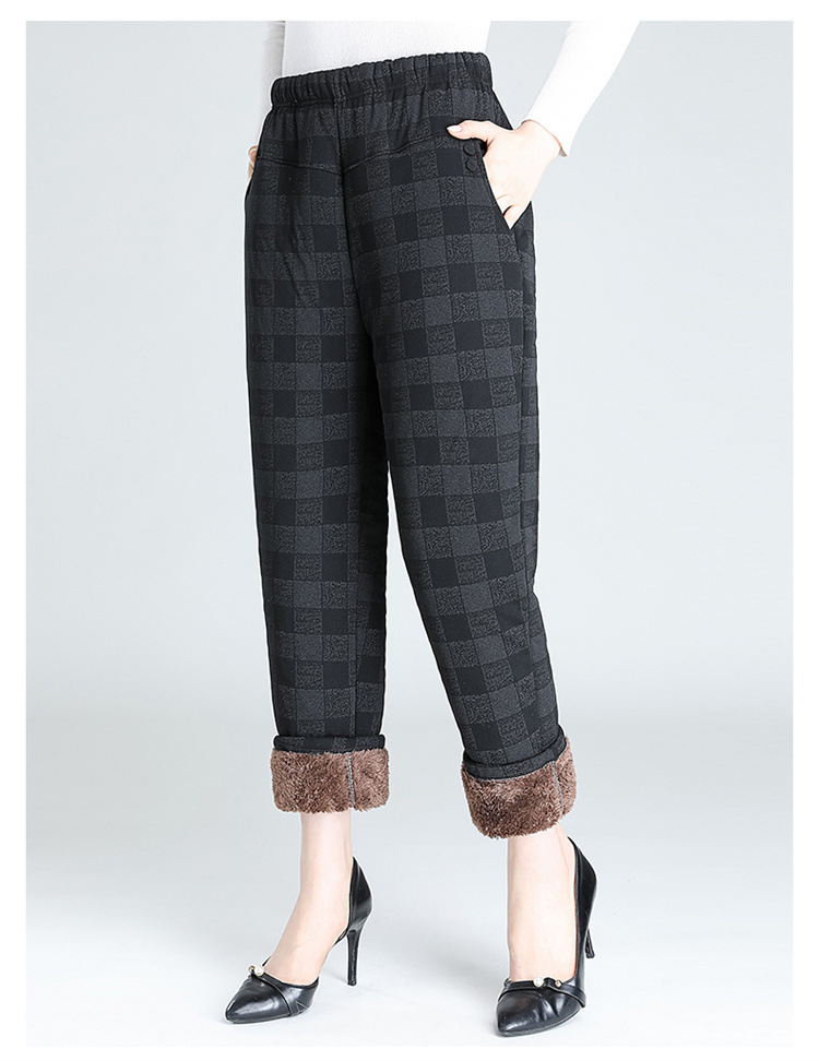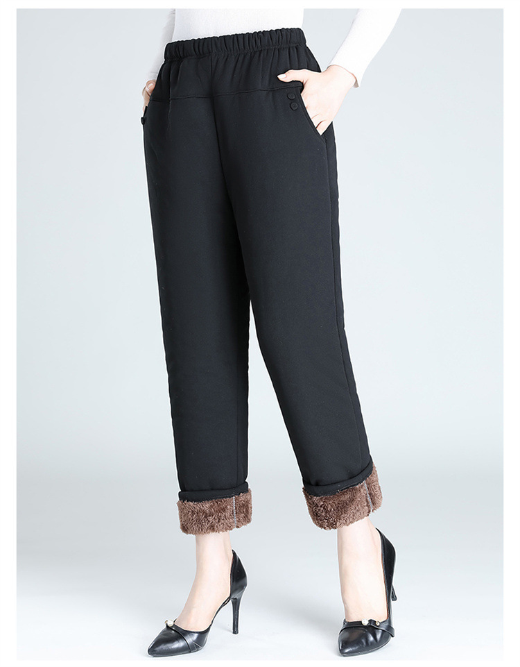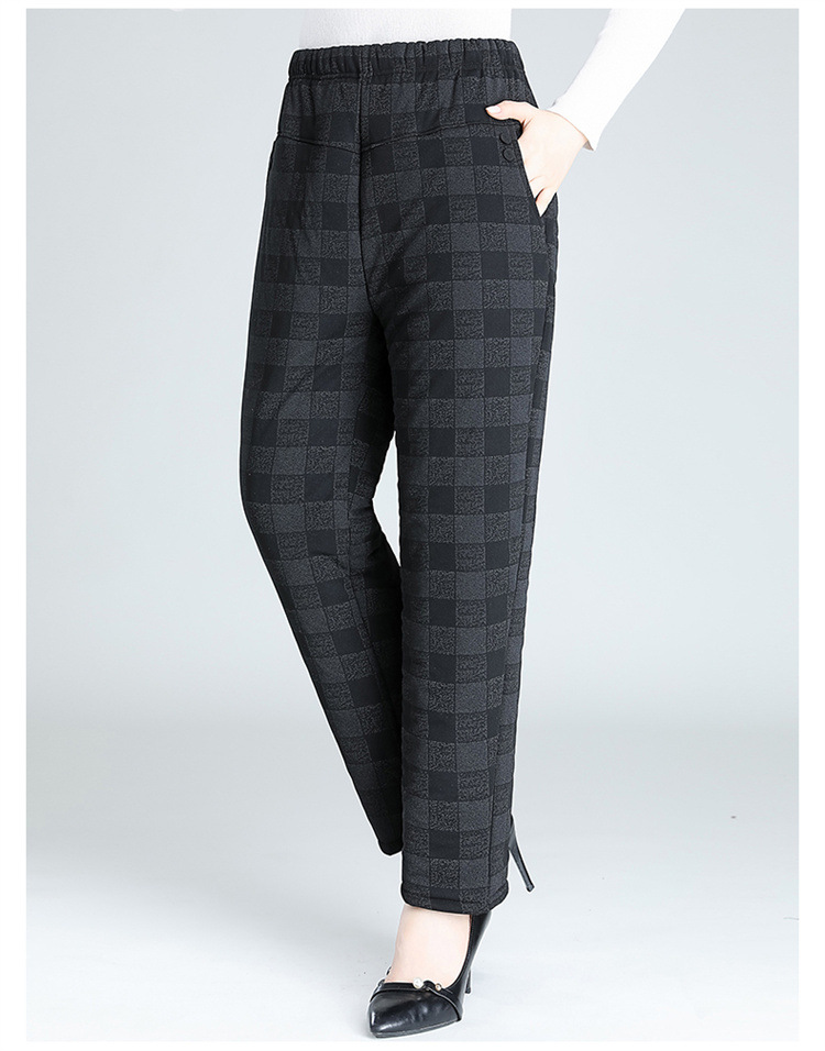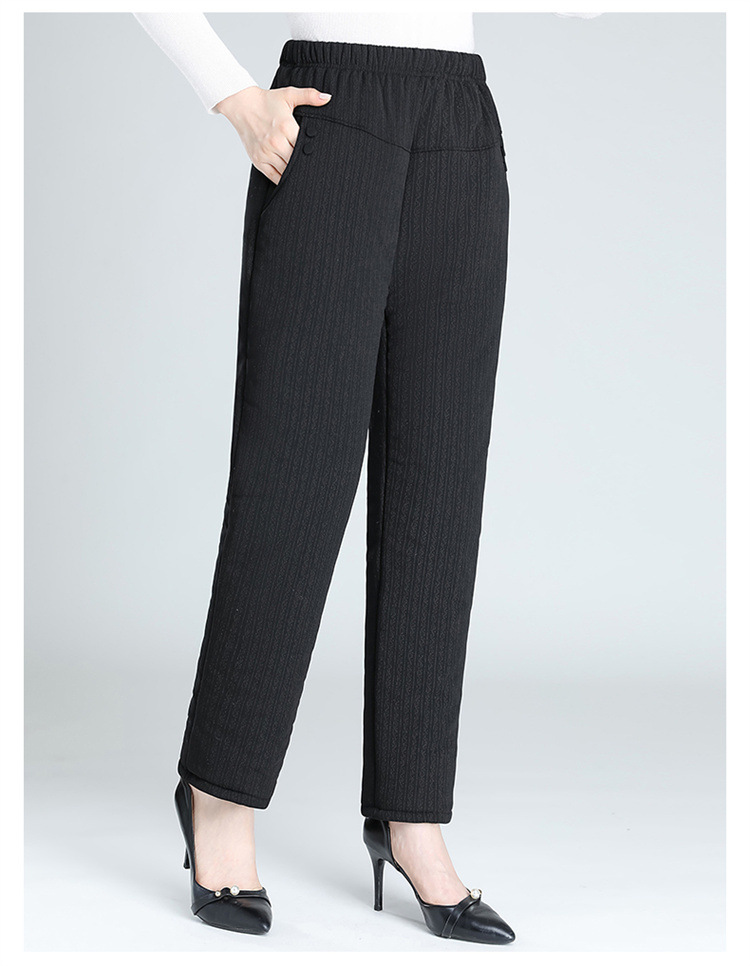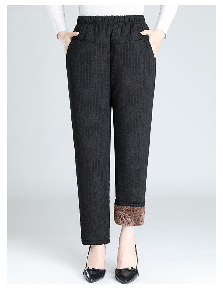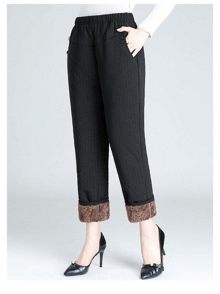 中年の女性のズボンとベルベットの厚い保温ズボンの中で高齢者の春秋服のお母さんのカジュアルなズボンの弾力性のおばあさんのストレートパンツ