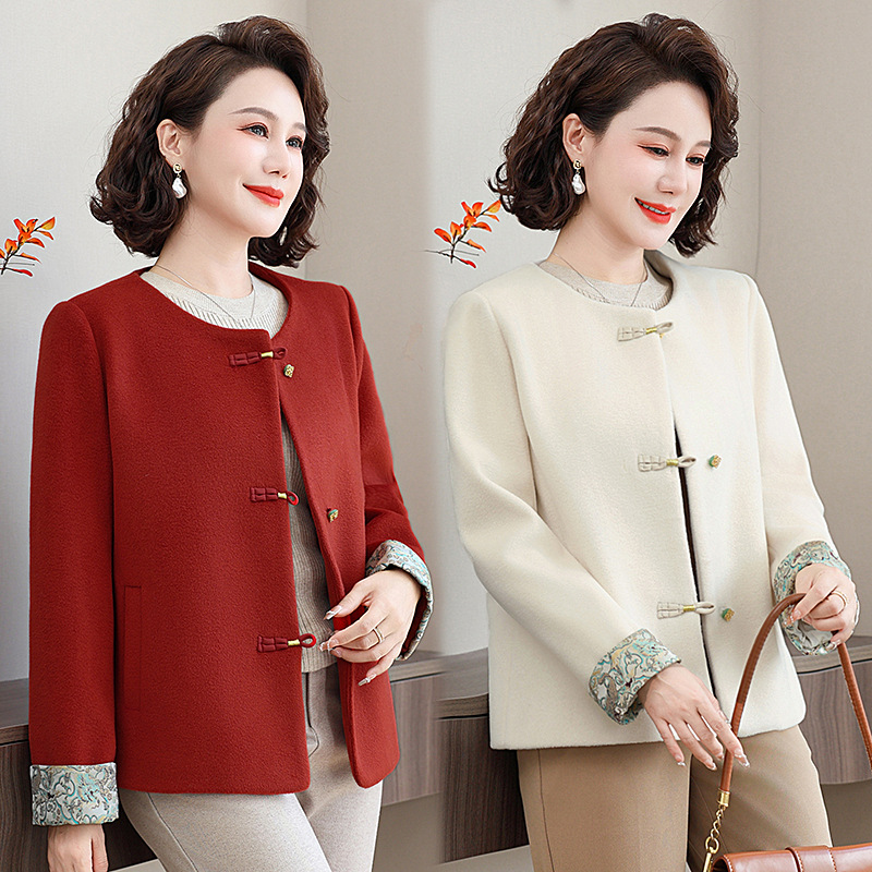 妈妈秋装毛呢短款外套洋气40岁50中老年女装春秋新款国风气质上衣