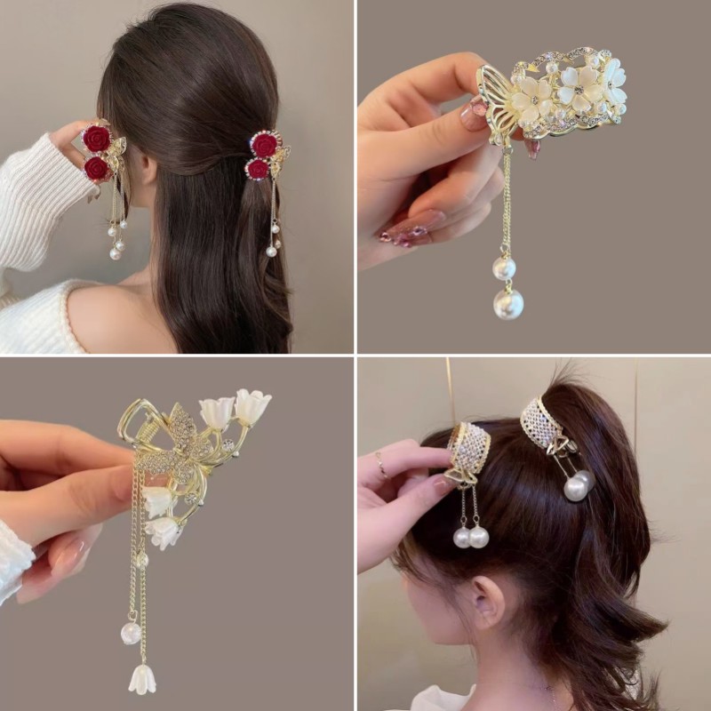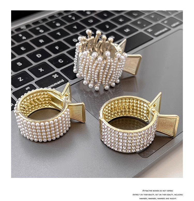 メタルハイポニーテールクリップ固定神器レディースパールクラウンヘアクリップ高级感ヘアクリップ高级感髪饰りクリップ