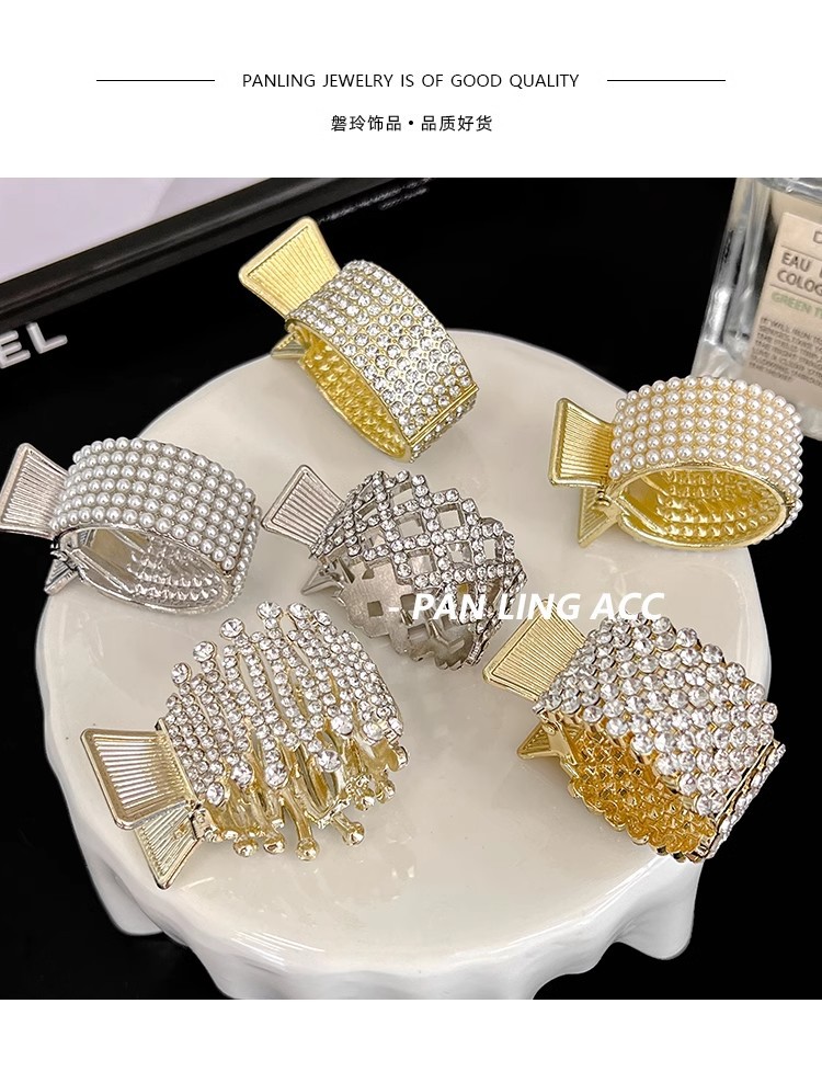 ライト高級ラインストーンパールハイポニーテールバックルグラブクリップ固定アーティファクト 2024 インターネット有名人の新しいサメクリップヘアピン
