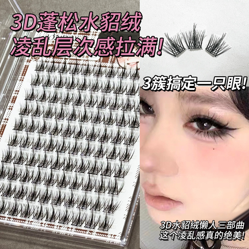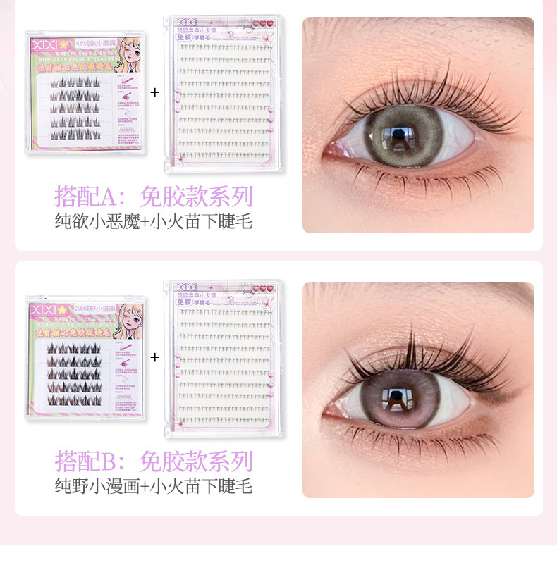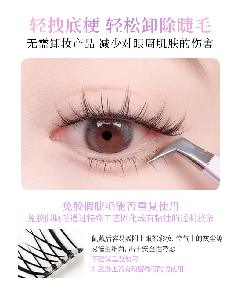 Gege bear倒扣免胶下睫毛 小野猫自然仿真单簇分段式嫁接假睫毛