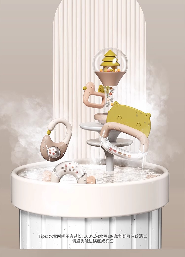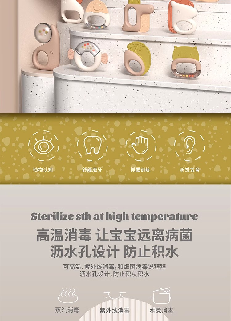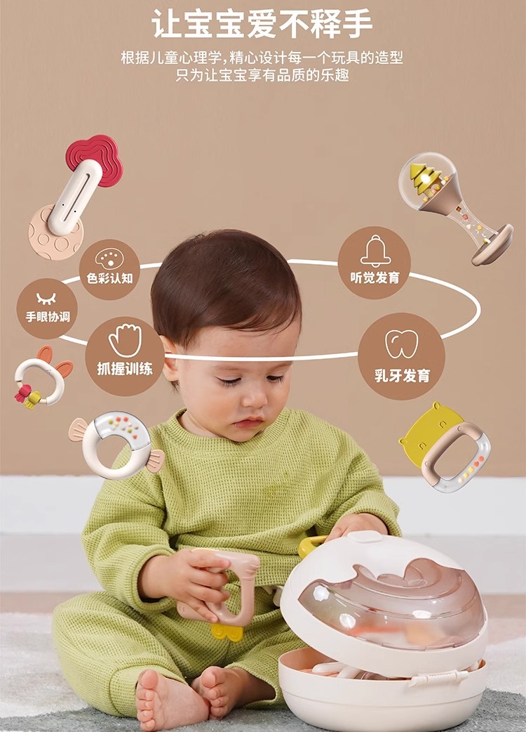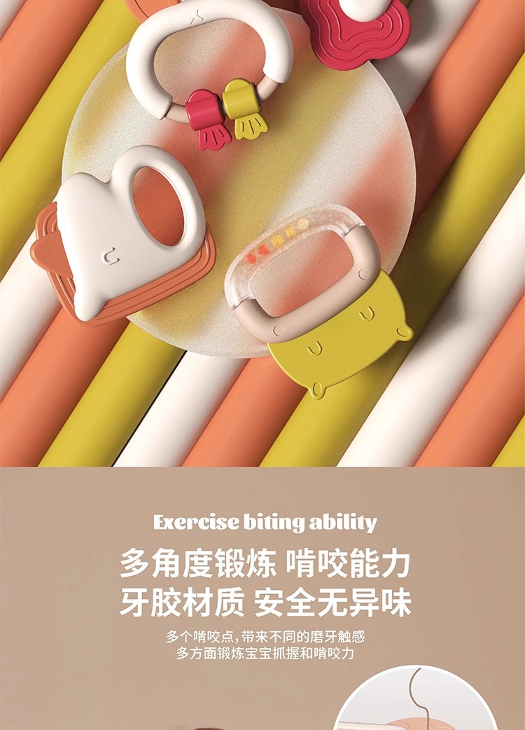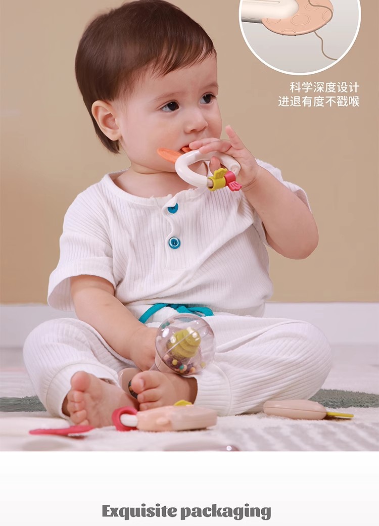 国境を越えた赤ちゃんの歯が手をかむベルの知育玩具セット新生児赤ちゃんが歯ぎしりできるおもちゃケース卸売り
