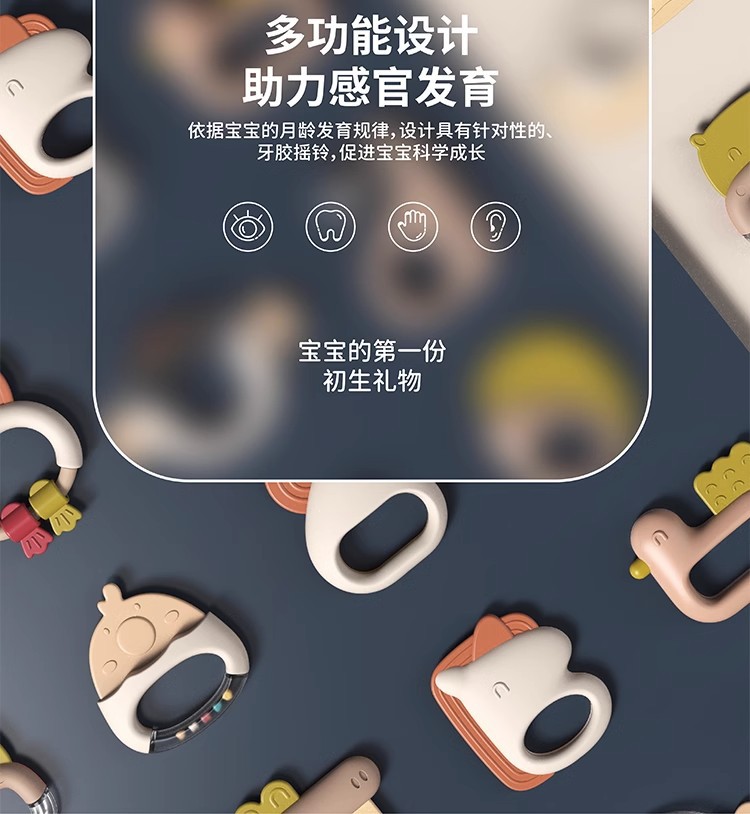 初生婴儿满月-岁宝宝儿牙胶满月礼盒套装婴儿手摇铃玩