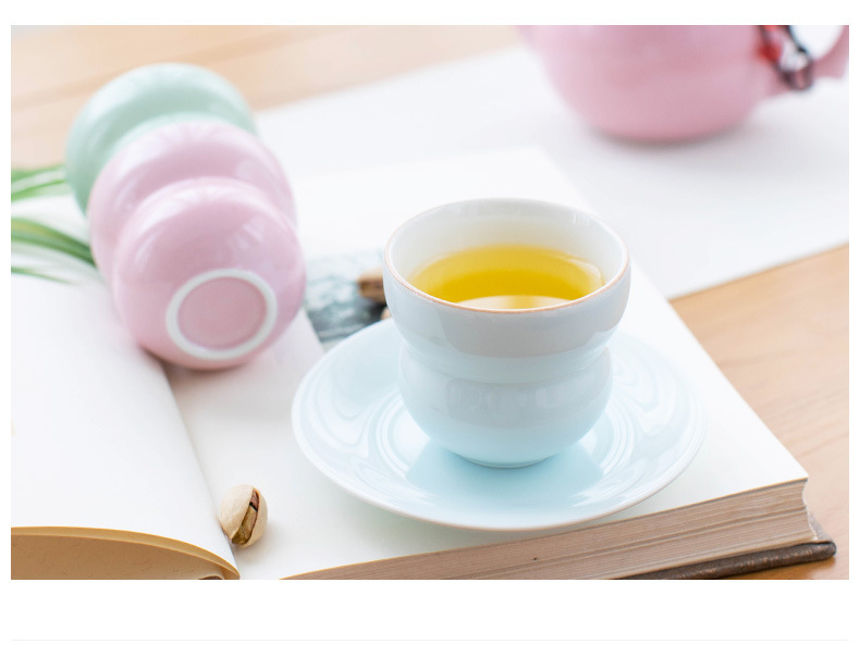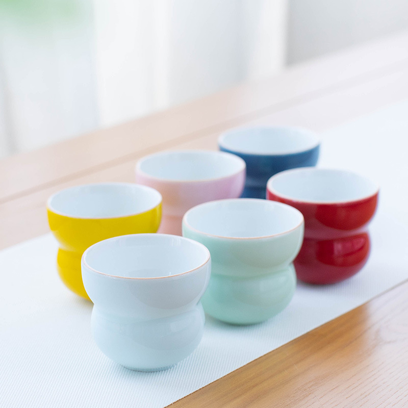 青磁の工夫の小さいお茶の杯の多彩でシンプルな家庭用のお茶の杯のお茶の杯のお茶のお茶の杯のマカロンの色の小さいコップ