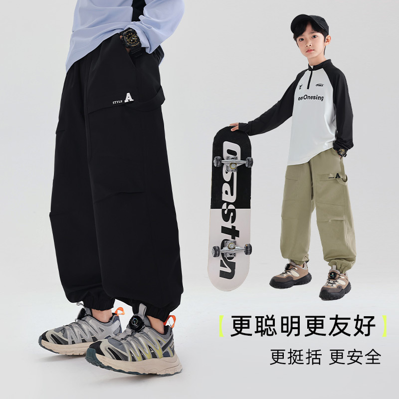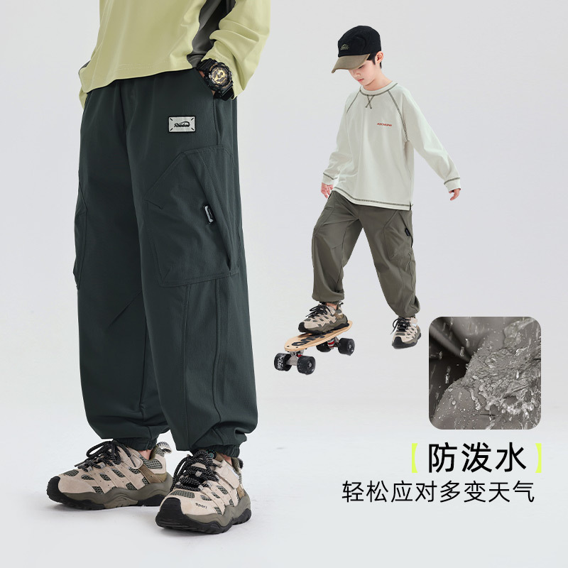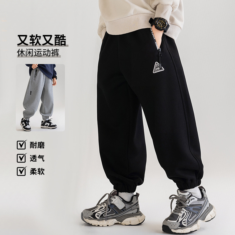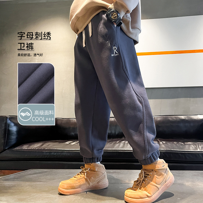 男の子用秋物スポーツパンツ2025新作、大きい子供用春秋カジュアルパンツ、子供用秋物トレンドクール保温パンツ