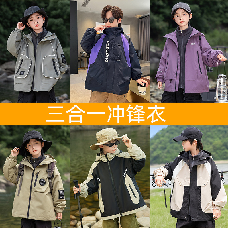 男の子用秋冬3in1ジャケット、年長児用防風防水冬用ジャケット、子供用冬用取り外し可能なジャケット、トレンディ