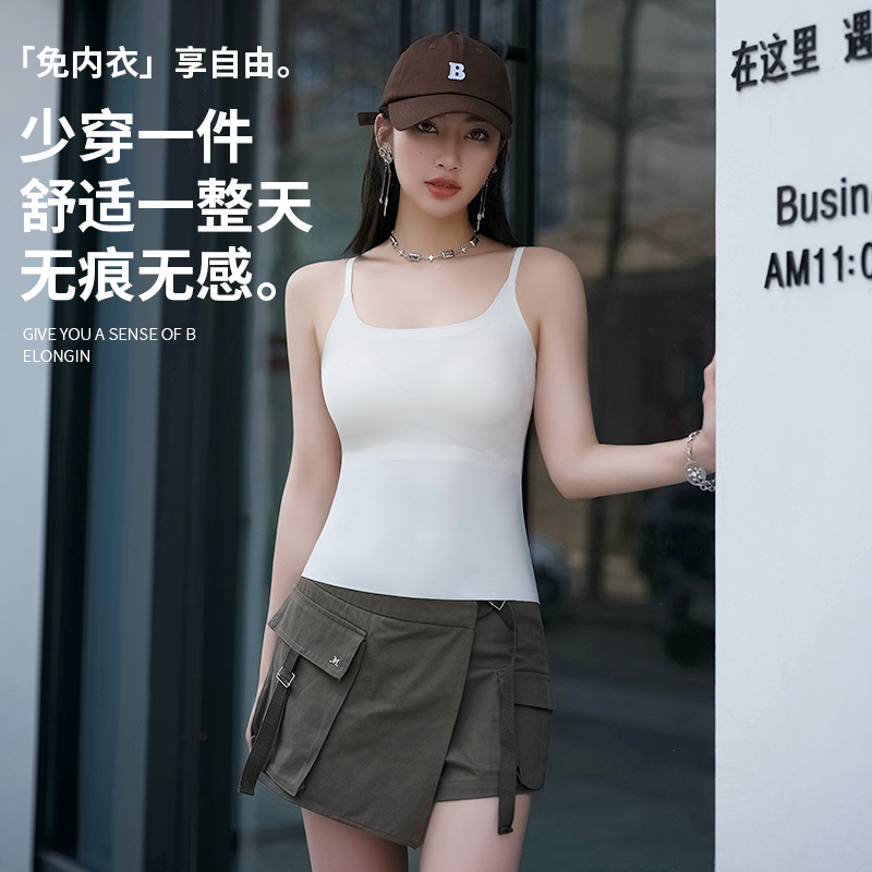 氷糸無痕通気ねじストラップベスト女性胸パッド付き美背夏の薄いタイプの下着