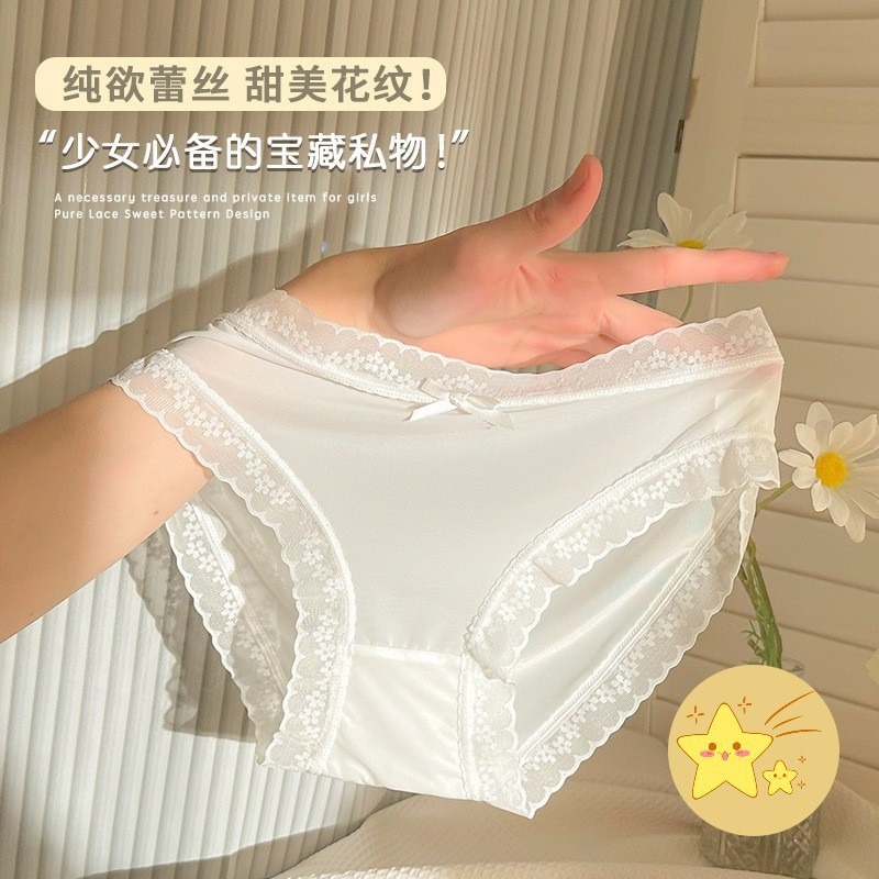 クリーム少女氷糸無痕下着夏の薄いレースのセクシーな中腰通気性のある女性の三角パンツ