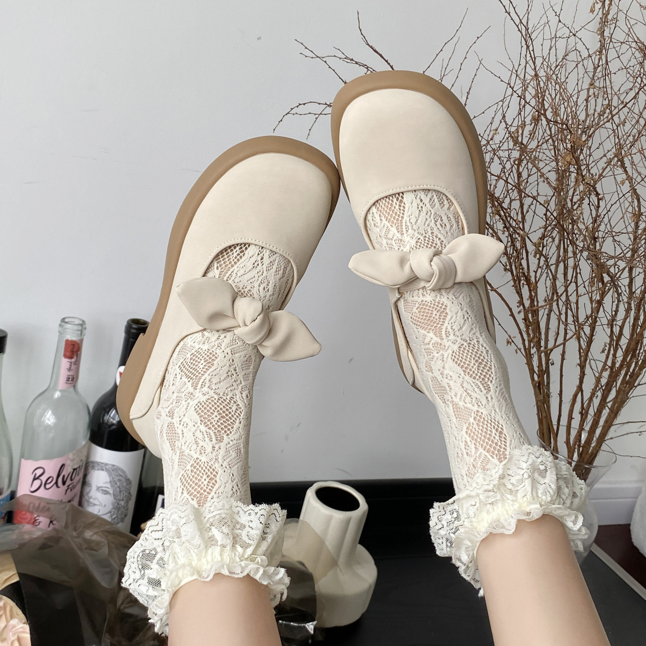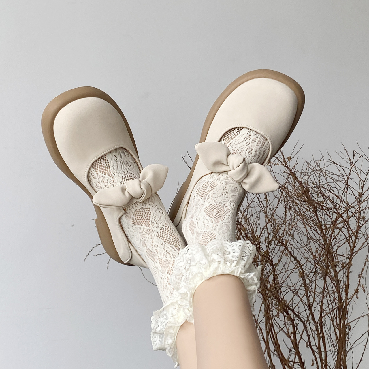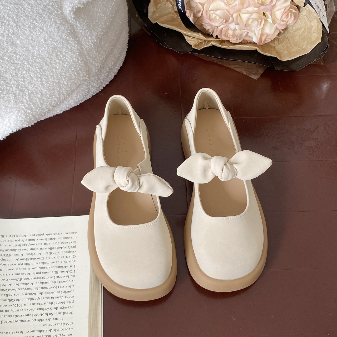 2024 春と夏の日本と韓国のスクエアトゥローヒールフラットレトロおばさん靴無地の女性の靴インターネット有名人の同じスタイル快適