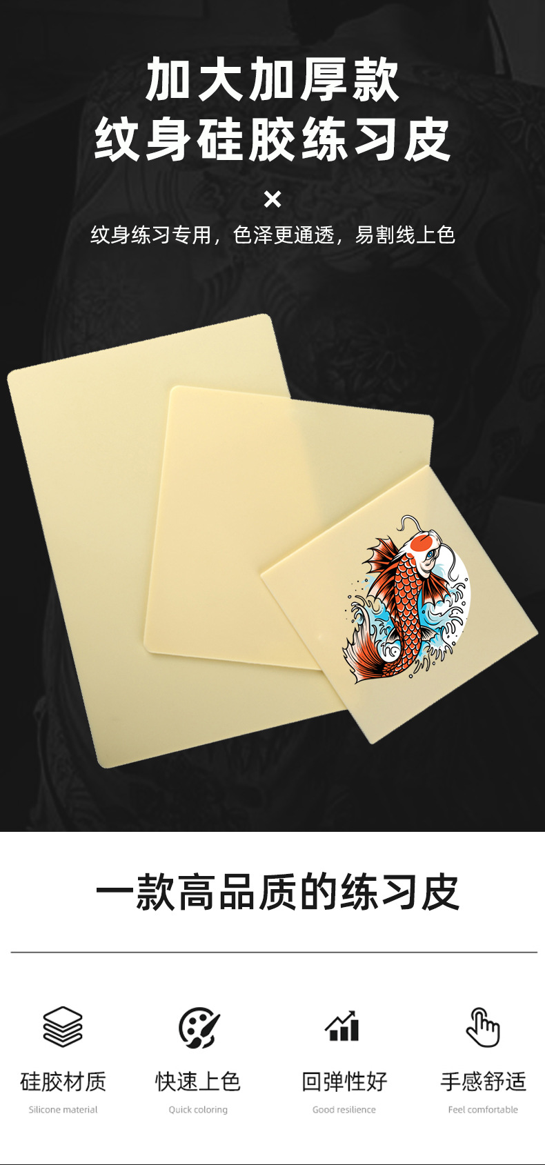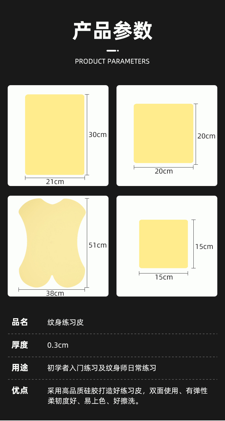 中四方タトゥー練習皮学生初心者練習偽皮シリコンシミュレーション練習手皮20*20*0.3cm